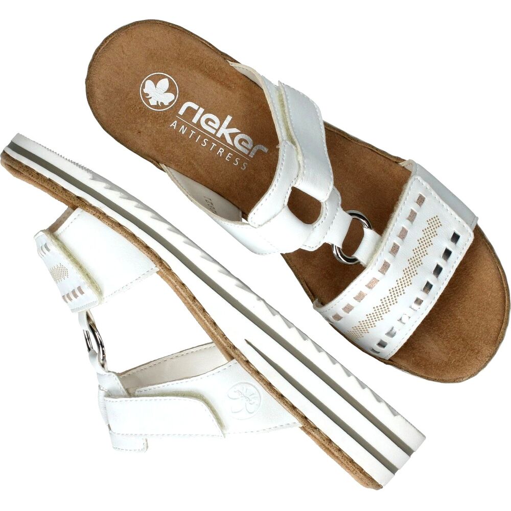 De Rieker Slipper V0636-80 Wit is een trendy en comfortabele slipper voor dames. Het voetbed is heerlijk zacht. Het boven- en binnenwerk van de slipper bestaat uit imitatieleer en textiel. De banden van de slipper zijn beide te verstellen met klittenband, waardoor de slipper een uitstekende pasvorm heeft. De lichtgewicht zool geeft goede grip en draagt zo bij aan een fijn loopcomfort!