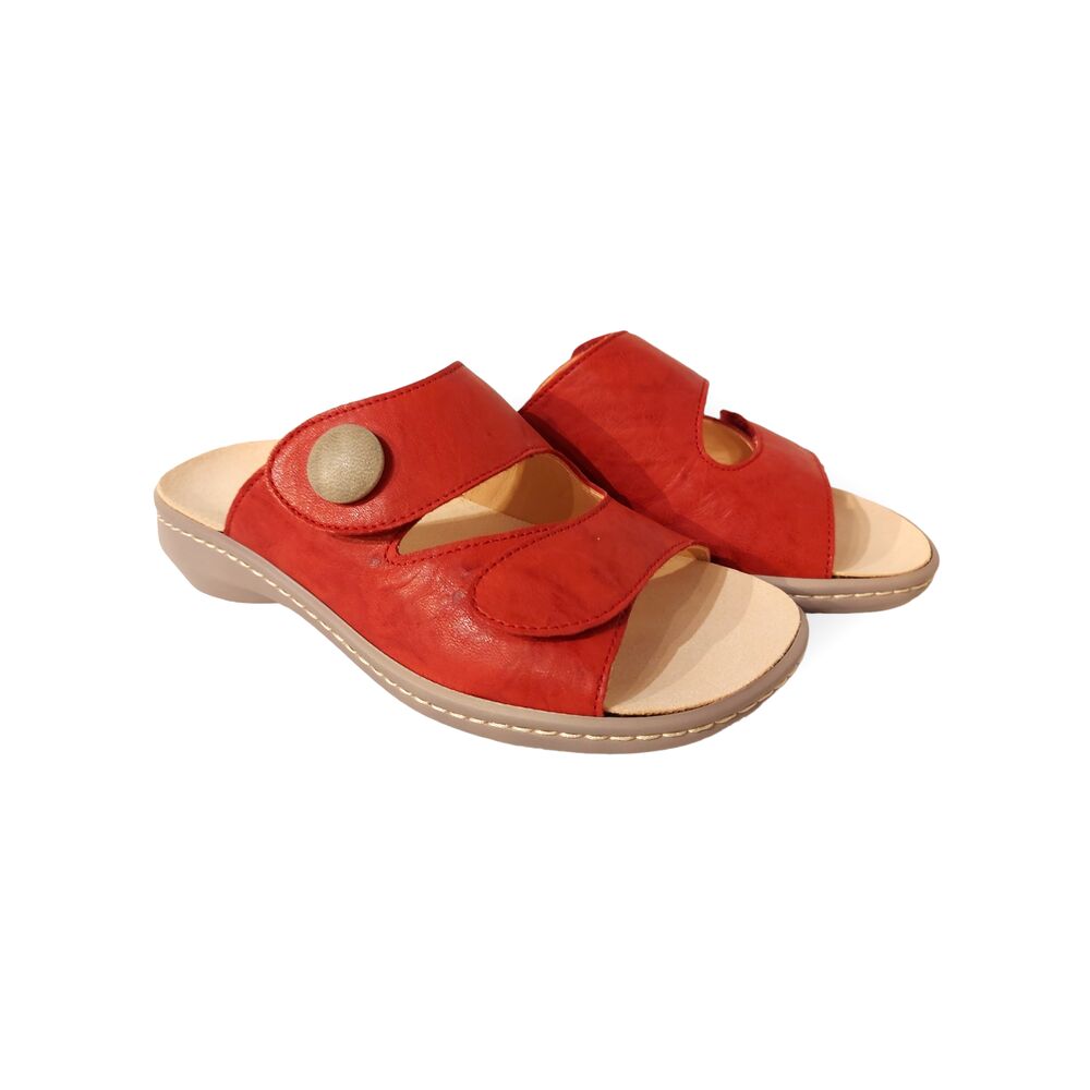 De Think! Slipper Camilla 3-000671-5030 Fire Combi Rood is een mooie slipper met een uitstekende pasvorm. Het bovenwerk is mooi, glad leer natuurlijk gelooid. De slipper is ook volledig leer gevoerd en verstelbaar met 2 klittenbanden. De slipper heeft een goed voetbed, die ook verwisselbaar is, zodat ze uitermate geschikt zijn om te dragen met een eigen steunzool. Met een slijtvaste loopzool die het loopcomfort optimaliseert.