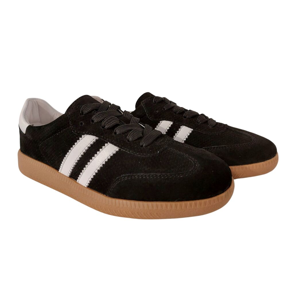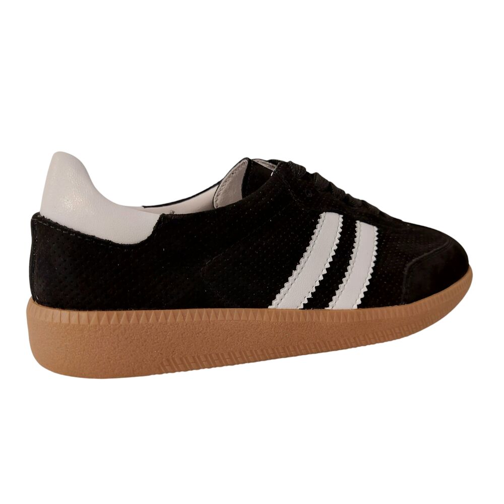 De Adventure Shoes Sneaker Atlanta Zwart is een fijne sneaker voor dames. Deze schoen van Adventure Shoes is gemaakt van comfortabel en soepel leer. Het bovenwerk is van zwart suèdeleer. De binnenkant is ook geheel van leer. Bovendien heeft de schoen een uitneembaar voetbed, zodat er eventueel eigen steunzolen in kunnen worden gelegd. Ook heeft de slijtvaste zool een goede grip en demping voor heerlijk loopcomfort. Kortom, een comfortabele schoen die loopcomfort garandeert.