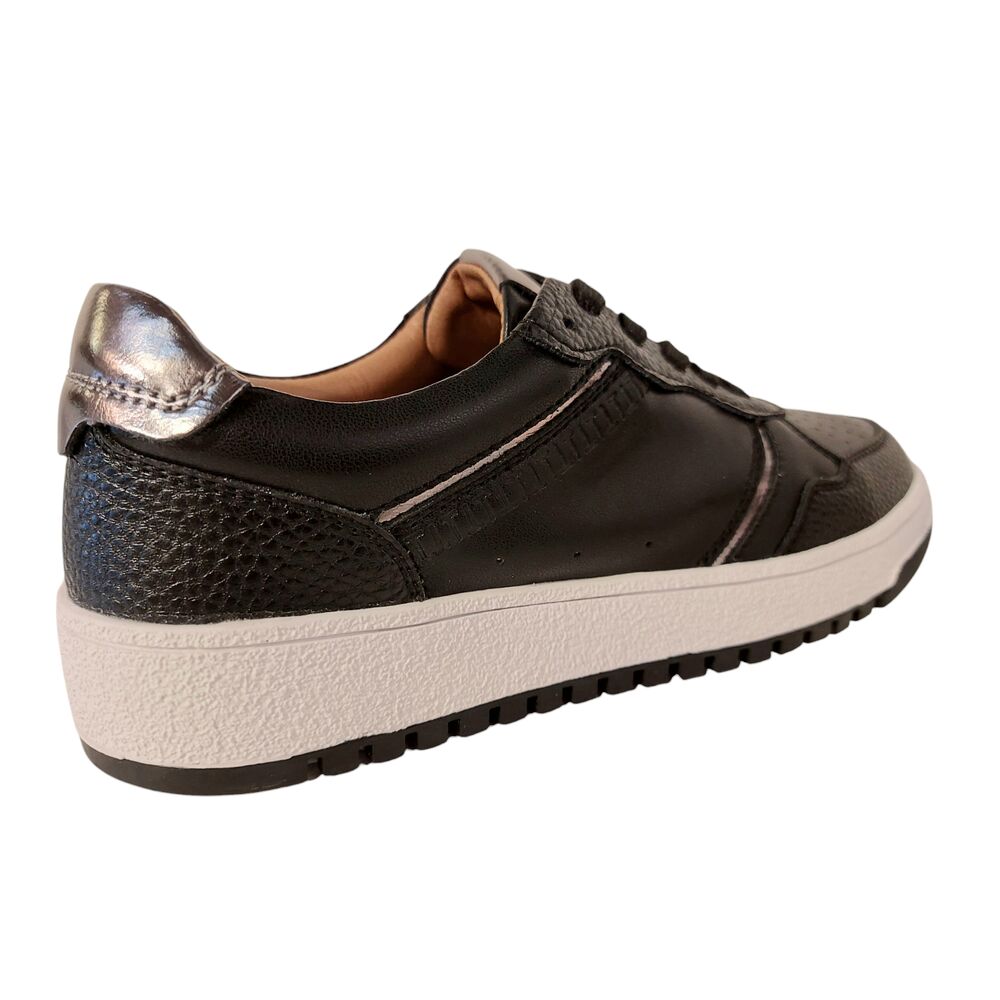 De Adventure Shoes Sneaker Boston Zwart is een fijne sneaker voor dames. Deze schoen van Adventure Shoes is gemaakt van comfortabel en soepel leer. Het bovenwerk is van zwart gladleer. De binnenkant is ook geheel van leer. Bovendien heeft de schoen een uitneembaar voetbed, zodat er eventueel eigen steunzolen in kunnen worden gelegd. Ook heeft de slijtvaste zool een goede grip en demping voor heerlijk loopcomfort. Kortom, een comfortabele schoen die loopcomfort garandeert.