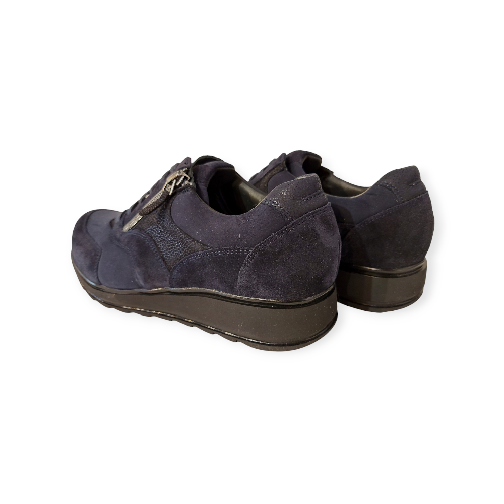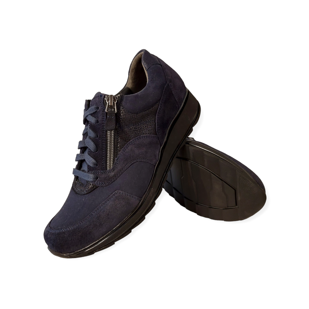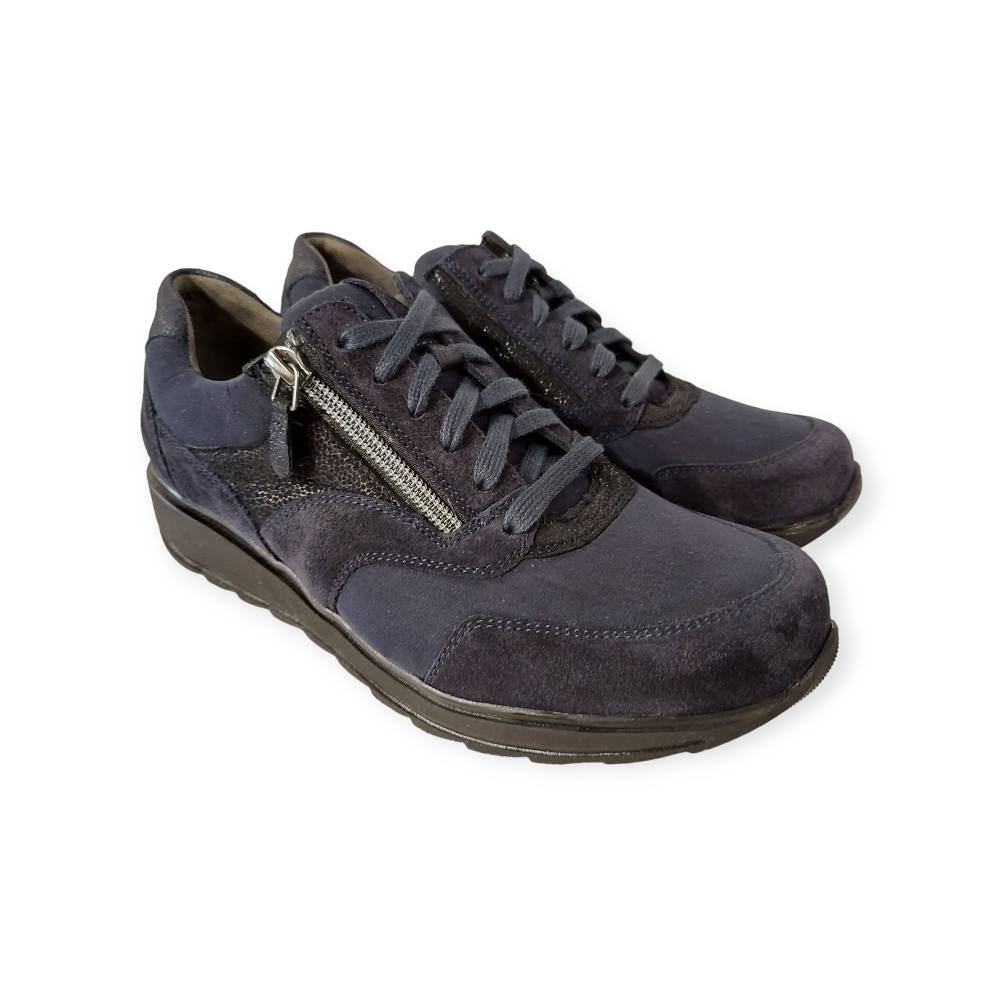 De Durea Sneaker Durea Sneaker 6279 685 1139 Donkerblauw Wijdte H is een heerlijke comfortabele schoen. Het bovenwerk is mooi suède en nubuck leer in een donkerblauwe kleur. Ook de voering is volledig van leer. De sneaker heeft een vetersluiting én een rits, voor een makkelijke instap. De schoen is gemaakt op wijdte H, voor een iets bredere voet. Het originele voetbed is erg goed, comfortabel en biedt veel steun. Maar het voetbed is ook uitneembaar, en kan plaats maken voor een eigen inlegzool, zodat de schoen voor iedereen toegankelijk is! De zool is lichtgewicht en draagt bij aan een fijn loopcomfort!