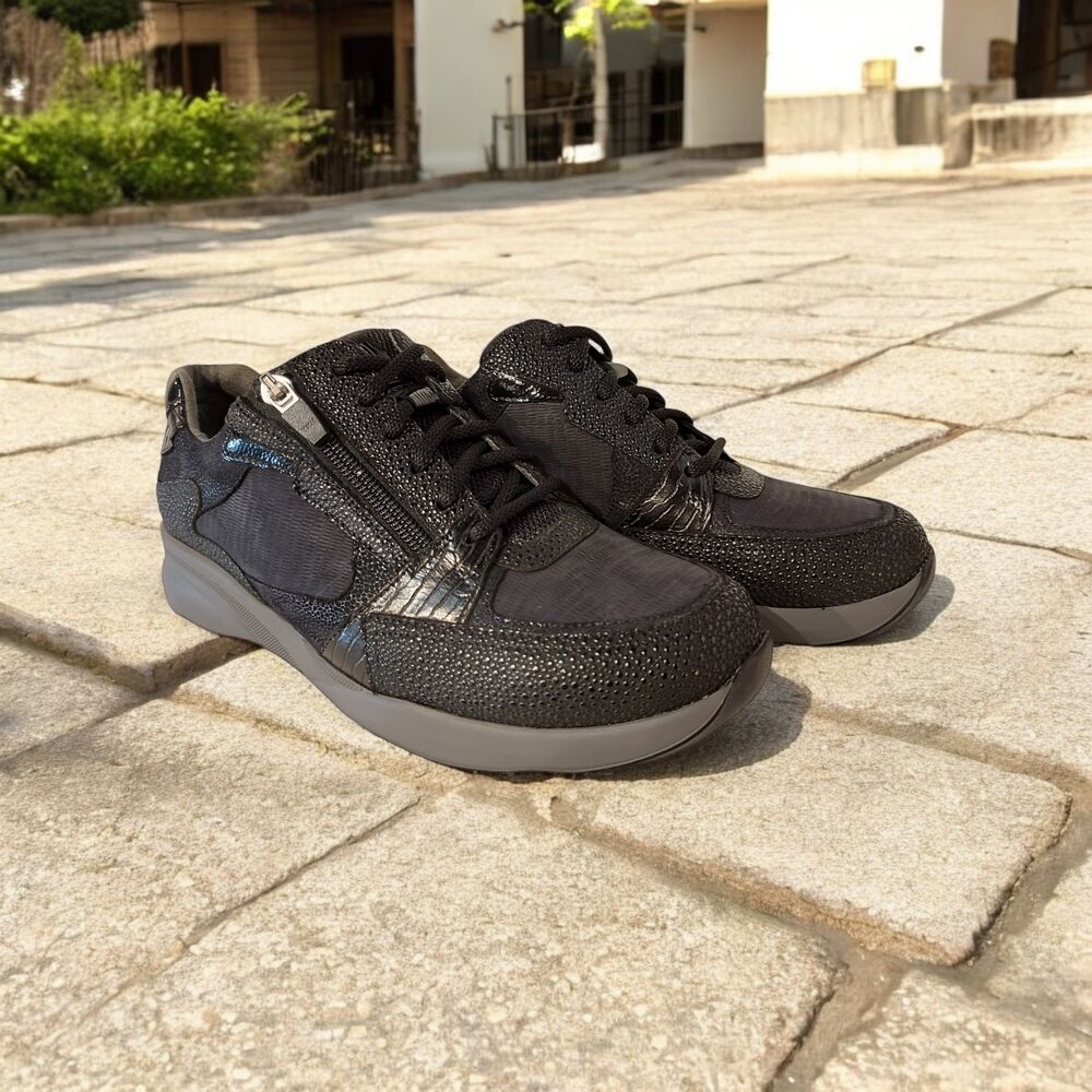 De Durea Sneaker 6295 608 1227 Blauw Zwart Wijdte K is een prachtige, trendy, uiterst comfortabele sneaker. Het bovenwerk is prachtige combinatie van leersoorten in de mooie tinten,blauw,zwart. De sneaker is textiel/leer gevoerd. De sneaker is gemaakt op wijdte K, voor een bredere voet. Het originele voetbed is erg goed, comfortabel en biedt veel steun. Maar het voetbed is ook uitneembaar, en kan plaats maken voor een eigen inlegzool, zodat de schoen voor iedereen toegankelijk is! De zool is van rubber en heeft een trendy vormgeving en draagt bij aan een fijn loopcomfort!