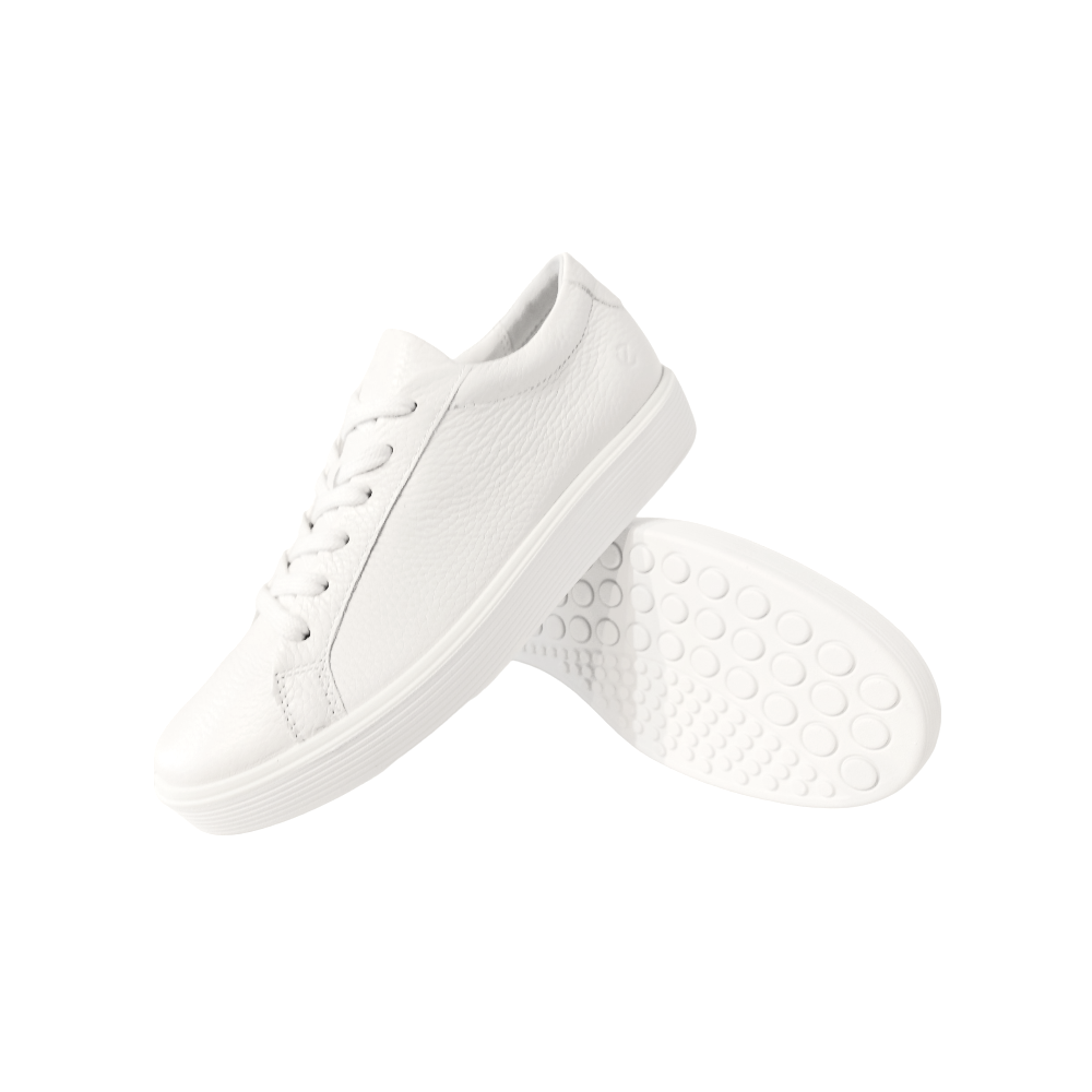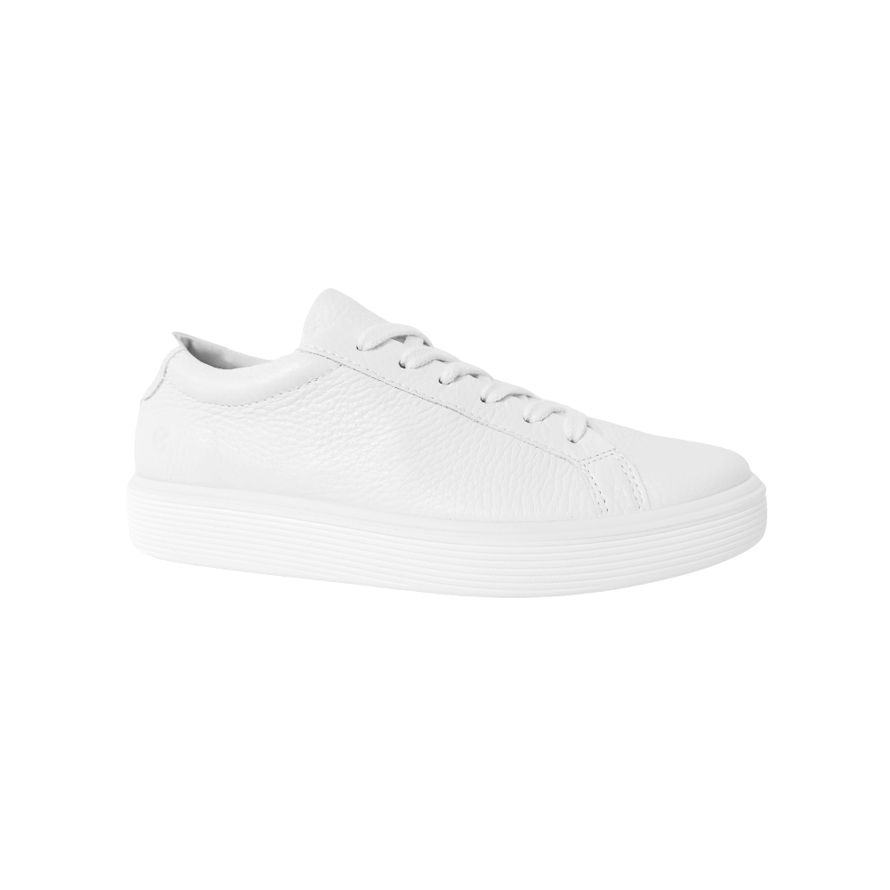 De Ecco Sneaker 219203 01007 Soft 60 W Wit is een sportieve sneaker met een goede pasvorm. Het bovenwerk is gemaakt van soepel wit glad leer. De schoen is geheel met textiel gevoerd. Met een goed voetbed, dat uitneembaar is, zodat er eventueel eigen zolen in gedragen kunnen worden. Met behulp van de veters kan de schoen afgesteld worden op elke voet. De sportieve loopzool is soepel, slijtvat en draagt zo bij aan een fijn loopcomfort. Kortom, een uiterst comfortabele sneaker!