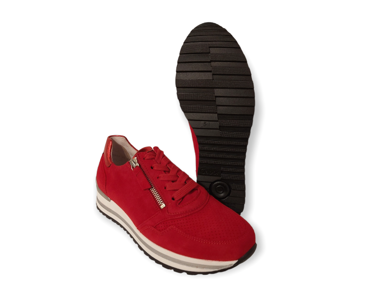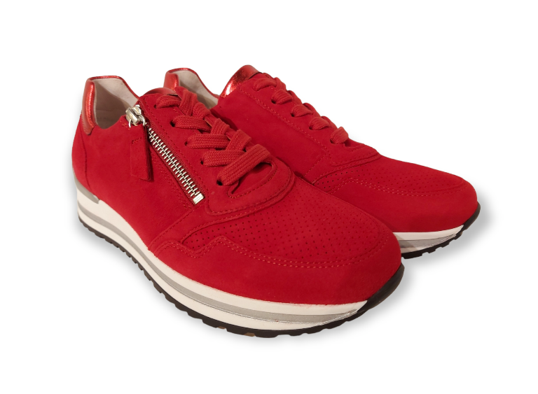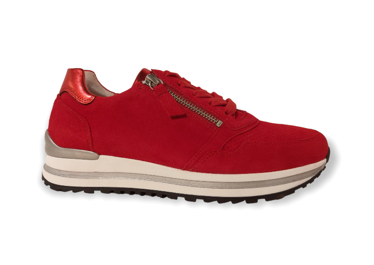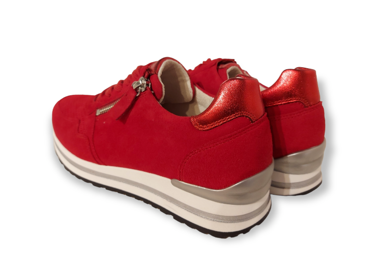 De Gabor Sneaker 06.528.68 Rubin Rood Suède Wijdte H is een prachtige trendy sneaker met een goede pasvorm. Het bovenwerk is een prachtig rood suède. De sneaker is met zowel leer als textiel gevoerd. Ook heeft de sneaker een uitneembaar voetbed zodat er eventuele steunzolen in gedragen kunnen worden. Daarnaast heeft de sneaker naast de vetersluiting ook een rits voor een makkelijke instap, maar ook voor de trendy look. Gemaakt op wijdte H, voor de iets bredere voet. Deze eyecatcher is bij veel stijlen te combineren.