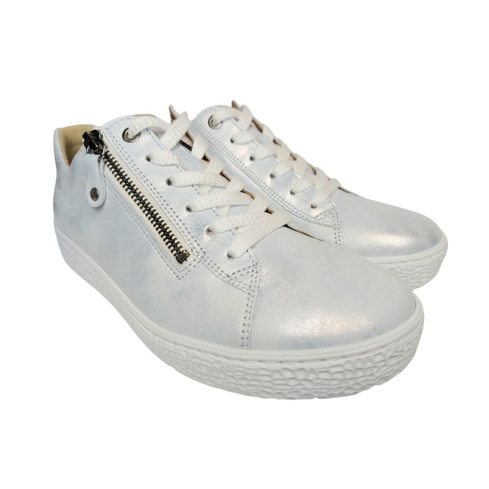 De Hartjes Sneaker 162.1402 40 59.00 Wijdte H Zilver is heerlijke comfortabele schoen. Het bovenwerk is mooi glad leer in een zilver kleur. Ook de voering is volledig van leer. De sneaker heeft een vetersluiting én een rits, voor een makkelijke instap. De schoen is gemaakt op wijdte H, voor een iets bredere voet. Het originele voetbed is erg goed, comfortabel en biedt veel steun. Maar het voetbed is ook uitneembaar en kan plaats maken voor een eigen steunzool, zodat de schoen voor iedereen toegankelijk is! De zool is lichtgewicht en draagt bij aan een fijn loopcomfort!