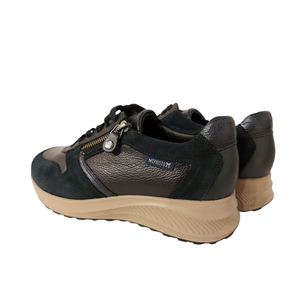 De Mephisto Sneaker Kim Blauw is een heerlijke comfortabele sneaker waar je dagen achter elkaar op lopen kan! Door de goede demping, iets waar Mephisto zo bekend om staat, loopt deze schoen uitstekend. Het bovenwerk is gemaakt van verschillende leersoorten in de kleur blauw. Verder is de schoen leer en textiel gevoerd. Het zeer comfortabele voetbed is uitneembaar, zodat er eventuele steunzolen in gedragen kunnen worden. Naast de vetersluiting heeft de sneaker ook 1 rits. Ideaal met het aan- en uittrekken, maar geeft zo ook een trendy look. De soepele, rubberen en slijtvaste zool draagt bij aan een geweldig loopcomfort. Een mooie sneaker van één en al comfort!