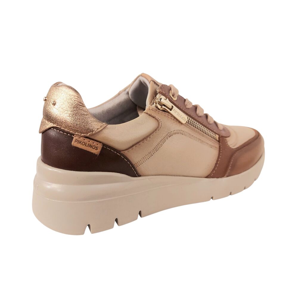 De Pikolinos Sneaker Cantabria W4R-6524CPC1 Marfil Bruin Roze Combi is een heerlijke sportieve sneaker voor dames. Het merk Pikolinos staat bekend om hun soepele leer, waar deze schoen ook zeker weer een bewijs van is! Het bovenwerk is gemaakt van soepel leer, wat maakt dat de schoen heerlijk aan de voet zit. Verder is de sneaker leer gevoerd en het voetbed is uitneembaar zodat er eventuele steunzolen in gedragen kunnen worden, veder is de schoen ook voorzien van een rits sluiting. Overigens is het originele voetbed uiterst comfortabel en geeft goede steun. De soepele, rubberen en slijtvaste zool draagt mee aan een heerlijk loopcomfort!