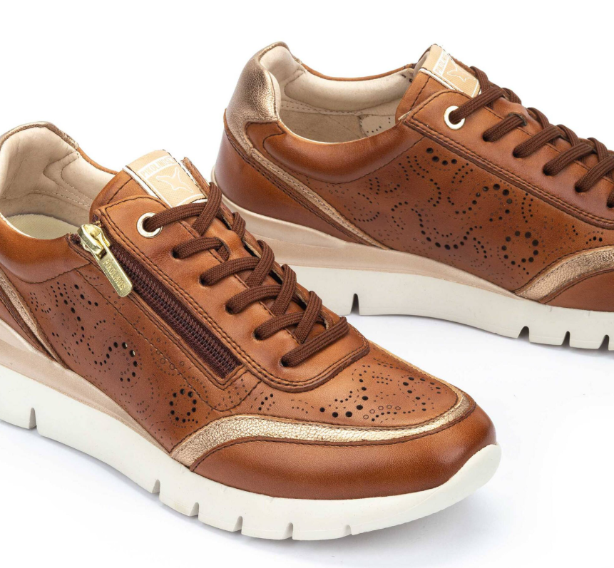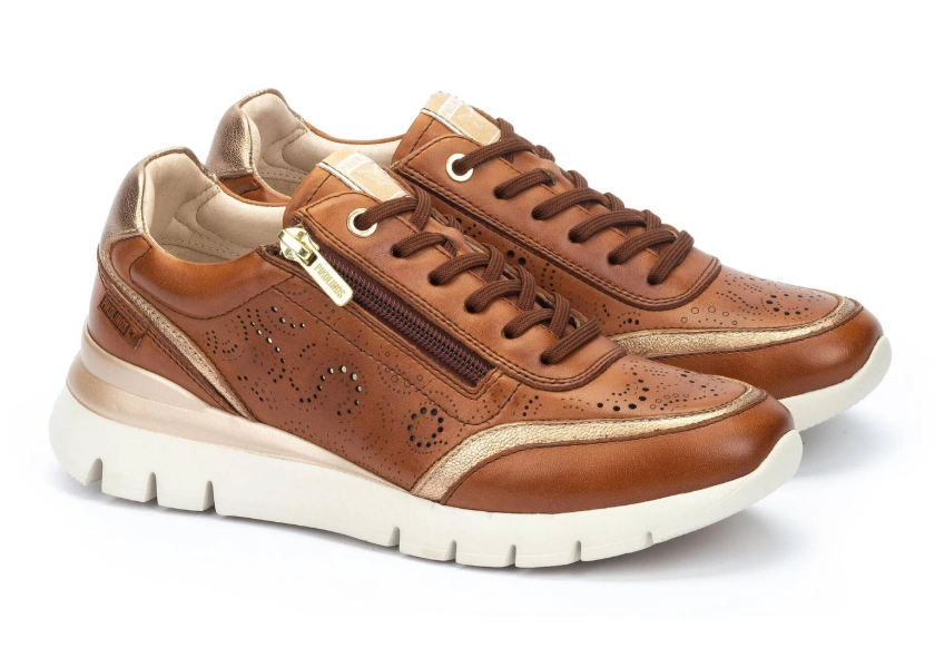 De Pikolinos Sneaker Cantabria W4R-6622C1 Brandy Bruin Goud is een heerlijke sportieve sneaker voor dames. Het merk Pikolinos staat bekend om hun soepele leer, waar deze schoen ook zeker weer een bewijs van is! Het bovenwerk is gemaakt van soepel leer, wat maakt dat de schoen heerlijk aan de voet zit. Verder is de sneaker leer gevoerd en het voetbed is uitneembaar zodat er eventuele steunzolen in gedragen kunnen worden, veder is de schoen ook voorzien van een rits sluiting. Overigens is het originele voetbed uiterst comfortabel en geeft goede steun. De soepele, rubberen en slijtvaste zool draagt mee aan een heerlijk loopcomfort!