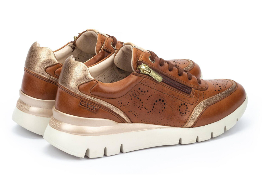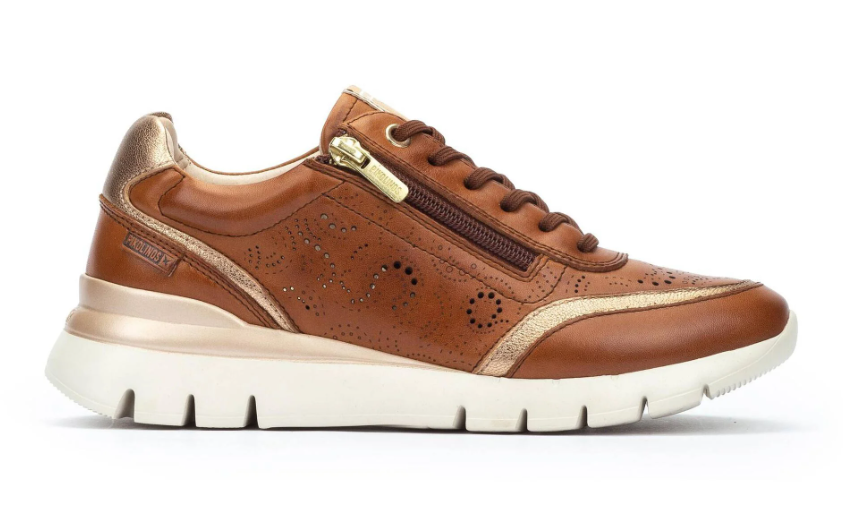 De Pikolinos Sneaker Cantabria W4R-6622C1 Brandy Bruin Goud is een heerlijke sportieve sneaker voor dames. Het merk Pikolinos staat bekend om hun soepele leer, waar deze schoen ook zeker weer een bewijs van is! Het bovenwerk is gemaakt van soepel leer, wat maakt dat de schoen heerlijk aan de voet zit. Verder is de sneaker leer gevoerd en het voetbed is uitneembaar zodat er eventuele steunzolen in gedragen kunnen worden, veder is de schoen ook voorzien van een rits sluiting. Overigens is het originele voetbed uiterst comfortabel en geeft goede steun. De soepele, rubberen en slijtvaste zool draagt mee aan een heerlijk loopcomfort!