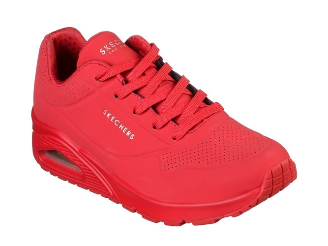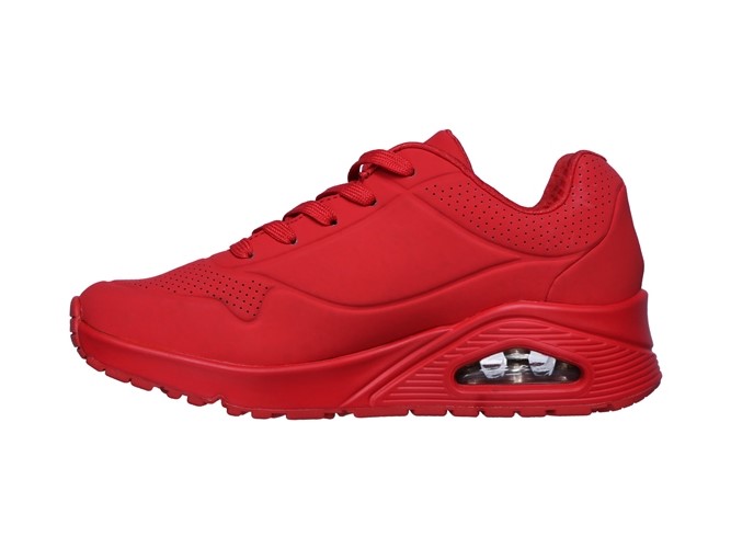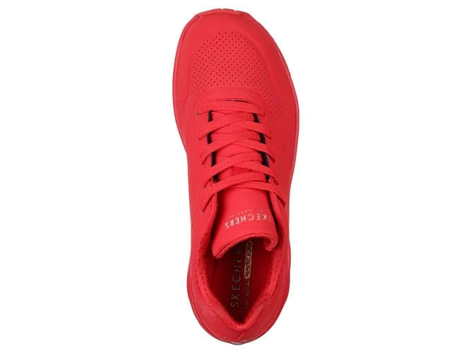 De Skechers Sneaker 73690 RED Rood is een heerlijk comfortabele sneaker voor dames. Het bovenwerk van de schoen is gemaakt van prachtig roodkleurig synthetisch materiaal met mooie perforatieaccenten op de neus die zorgen voor een verkoelend effect. De binnenkant van de sneaker is gemaakt van textiel met een gewatteerde kraag en tong. Bovendien heeft de sneaker een Air-Cooled Memory Foam voetbed. Dit houdt in dat het voetbed gelijk comfort en goede demping geeft, maar daarnaast wel ademend blijft. Met memory foam voor een optimaal comfort. Verder heeft de sneaker een tussenzool met een zichtbaar air gedempt schokabsorberend hakkussen. Kortom een uiterst comfortabele sneaker. Tot slot heeft de schoen een flexibele gripzool voor de beste loopcomfort.
