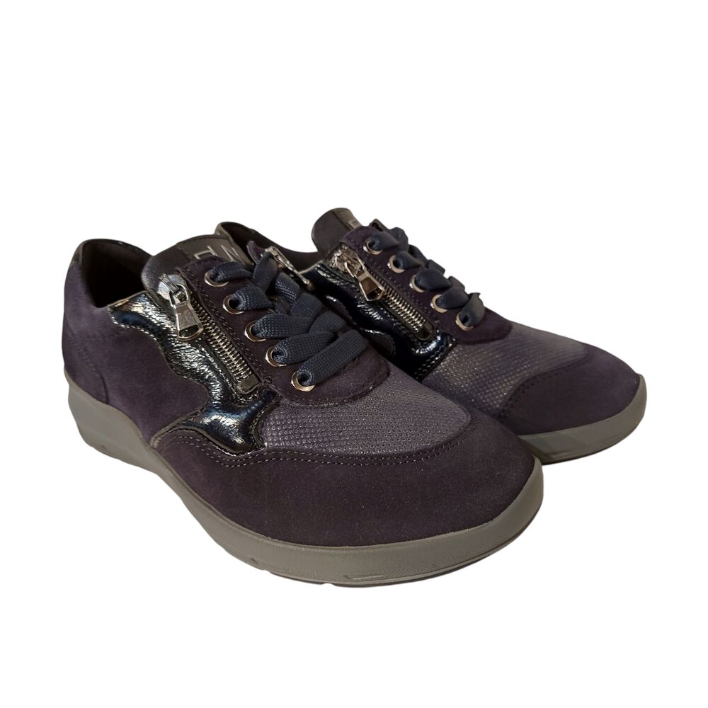 De Waldlaufer Orthotritt Sneaker 831M01 401 195 Donkerblauw Wijdte M is een sneaker met een uitstekende pasvorm. Het bovenwerk is mooi donkerblauw leer, gecombineerd met stretch bij de voorvoet. Met een zachte binnen voering. Het zit en loopt fantastisch! De sneaker heeft een uitneembaar voetbed zodat ze met eigen steunzolen gedragen kunnen worden. Maar het eigen voetbed is zeer goed. De schoen is gemaakt op wijdte M, geschikt voor een brede voet. Naast de vetersluiting heeft de sneaker ook een ritsje, voor een makkelijke instap. De rubberen loopzool geeft goede demping en draagt bij aan een geweldig loopcomfort! Een ideale schoen voor een gevoelige voet.