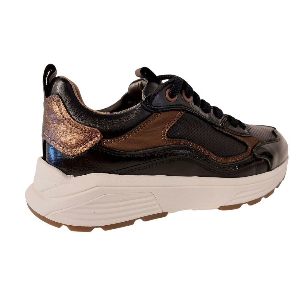De Xsensible Stretchwalker Sneaker Milau 33004.4.040 G Zwart Combi is een zeer comfortabele sneaker met een uitstekende pasvorm. Het buitenwerk is gemaakt van zwart (lak)leer, gecombineerd met bruine en metallic bronzen details. Daarnaast is het binnenwerk gemaakt van leer en textiel. De sneaker heeft een zeer goed en comfortabel voetbed die ook uitneembaar is, zodat er eventueel eigen steunzolen in kunnen worden gedragen. De zool is zeer stabiel en slijtvast en draagt bij aan een geweldig loopcomfort. Loopcomfort gegarandeerd! Hieronder nog wat extra informatie over Xsensible.