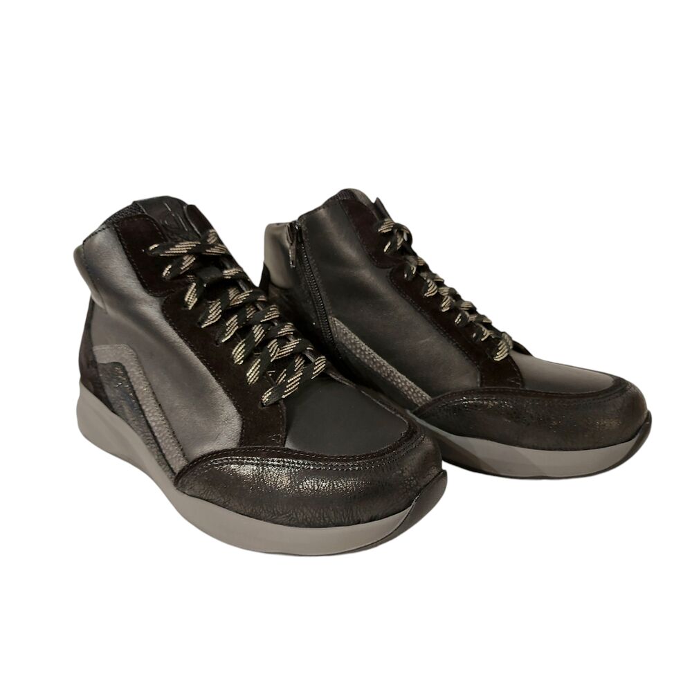 De Durea Veterboot 9811 609 1343 Wijdte M Zwart Grijs is een heerlijke comfortabele veterboot. Het bovenwerk is gemaakt van een combinatie van leersoorten in de kleuren zwart en grijs. De voering is volledig van leer. De veterboot heeft een vetersluiting én een rits, voor een makkelijke instap. De boot is gemaakt op wijdte M, voor een brede voet. Het originele voetbed is erg goed, comfortabel en biedt veel steun. Maar het voetbed is ook uitneembaar, en kan plaats maken voor een eigen inlegzool, zodat de boot voor iedereen toegankelijk is! De zool is lichtgewicht en draagt bij aan een fijn loopcomfort!.