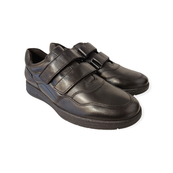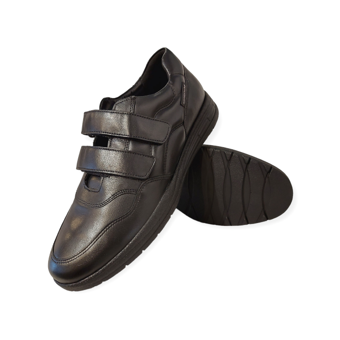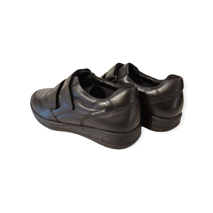 De Mephisto Klittenbandschoen Ianis Black Zwart is een uiterst comfortabele klittenbandschoen met een uitstekende pasvorm. Het bovenwerk is gemaakt van zwart glad leer. De veterboot is geheel leer gevoerd. Met een zeer goed voetbed dat ook uitneembaar is om er eigen steunzolen in te kunnen dragen. De slijtvaste zool geeft zeer goede demping, en draagt bij aan een geweldig loopcomfort!