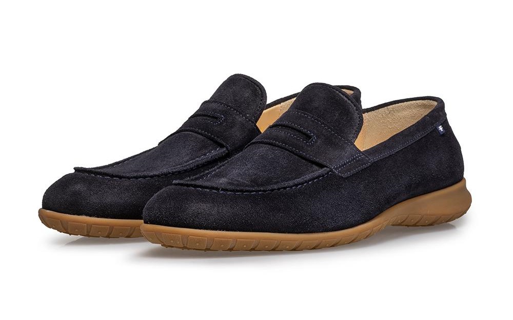 De Floris van Bommel Mocassin Instapper SFM-40020-41-01 Donkerblauw is een prachtige geklede instapper met een uitstekende pasvorm. Model: De Wolker 02.02. Het bovenwerk is gemaakt van mooi donkerblauw suède leer. Bovendien is de schoen ook volledig leer gevoerd. De schoen heeft wijdte G1/2, voor een normale voet. Met een uitneembaar voetbed zodat er eventueel eigen zolen in kunnen worden gedragen. Met een soepele, rubberen zool, om het loopcomfort te optimaliseren. De beste kwaliteit, speciaal voor u!