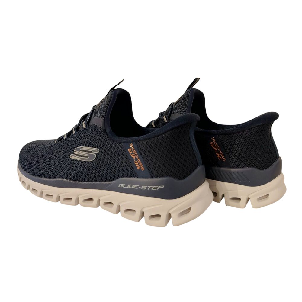 De Skechers Instapper Glide Step Noxus 233010/NVY Blauw is een heerlijk comfortabele instapper voor heren. Het bovenwerk van de schoen is gemaakt van zwart textiel. Hierdoor ademt de schoen en dat zorgt voor een verkoelend effect. De binnenkant van de schoen is gemaakt van textiel met een gewatteerde kraag. Bovendien heeft de sneaker een voetbed met Memory Foam. De schoen heeft daarnaast ook een stevige gripzool. Zo biedt deze instapper de ultieme oplossing voor comfort de hele dag door.