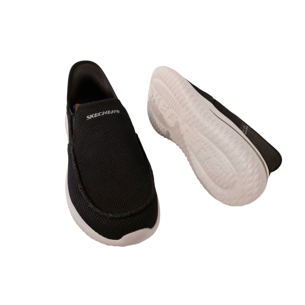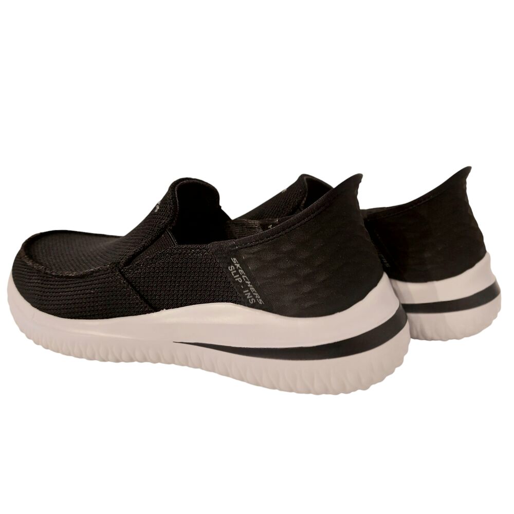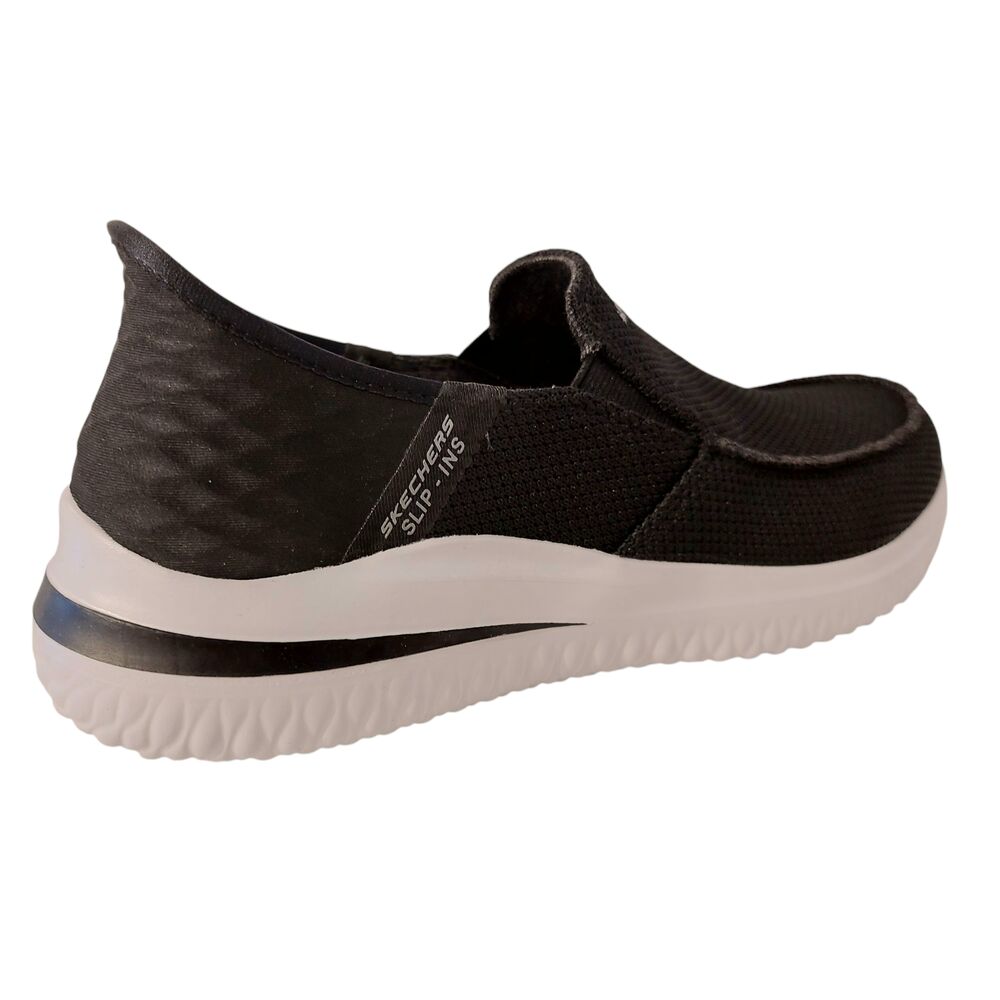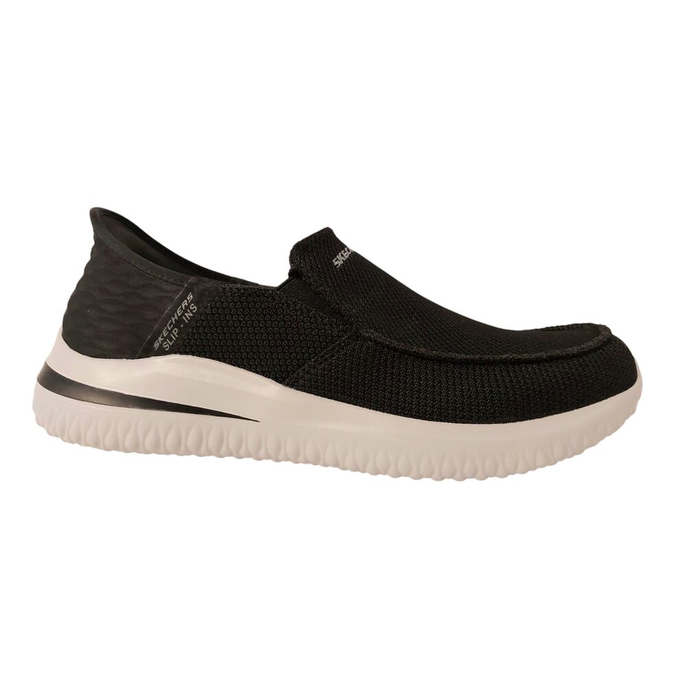 De Skechers Instapper Hands-Free Slip-Ins Delson 3.0 Cabrino 210604/BLK Zwart is een heerlijk comfortabele instapper voor heren. Het bovenwerk van de schoen is gemaakt van zwart textiel. De binnenkant van de schoen is gemaakt van textiel met een gewatteerde kraag. Bovendien heeft de sneaker een Goga Mat Arch® voetbed met Memory Foam. Dit betekend dat de schoen naar uw voet zal gaan staan en uw voet zo optimaal zal ondersteunen, maar daarnaast wel ademend blijft. Met Memory Foam voor een optimaal comfort. De binnenzool is uitneembaar, zodat er eventueel eigen zolen in gedragen kunnen worden. Deze instapper is een Stretch Fit®-instappermodel voor sokachtig comfort en voor een gemakkelijke instap. Door de elasticiteit en de ingebouwde 'schoenlepel, het welbekende Slip-In systeem, kunt u deze schoen aandoen zonder een schoenlepel of uw handen erbij te gebruiken. Daarnaast is deze schoen ook nog eens Machine Washable, te wassen in de wasmachine. De schoen heeft daarnaast ook een stevige gripzool. Zo biedt deze instapper de ultieme oplossing voor comfort de hele dag door.
