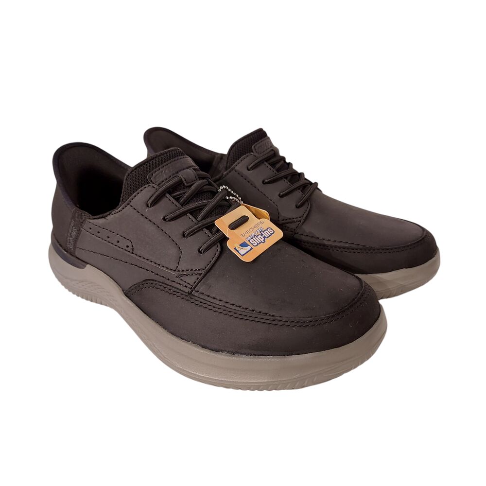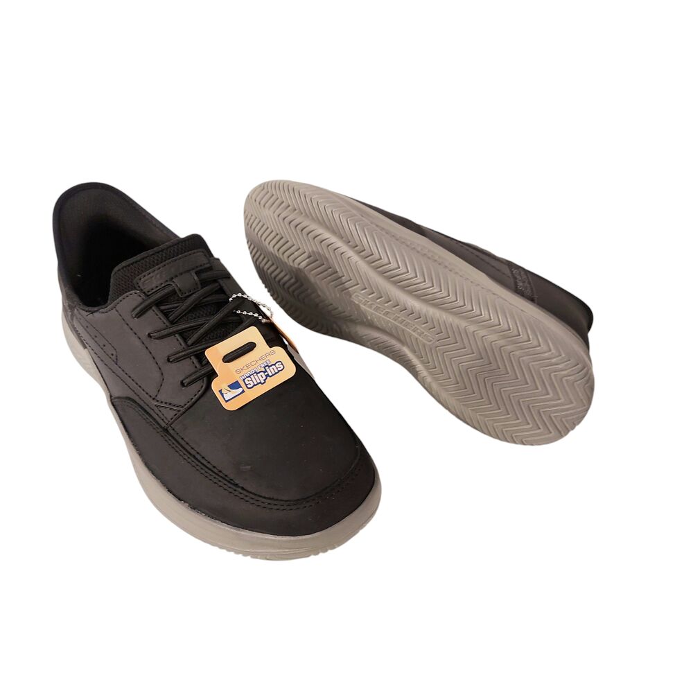 De Skechers Instapper Hands-Free Slip-Ins Hasting Rory 205211/BLK Zwart is een heerlijk comfortabele instapper voor heren. Het bovenwerk van de schoen is gemaakt van bruin leer en textiel. De binnenkant van de schoen is gemaakt van textiel met een gewatteerde kraag. Bovendien heeft de sneaker een Goga Mat Arch® voetbed met Memory Foam. Dit betekend dat de schoen naar uw voet zal gaan staan en uw voet zo optimaal zal ondersteunen, maar daarnaast wel ademend blijft. Met Memory Foam voor een optimaal comfort. De binnenzool is uitneembaar, zodat er eventueel eigen zolen in gedragen kunnen worden. Deze instapper is een Stretch Fit®-instappermodel voor sokachtig comfort en voor een gemakkelijke instap. Door de elasticiteit en de grote instap kunt u deze schoen aandoen zonder een schoenlepel of uw handen erbij te gebruiken. Daarnaast is deze schoen ook nog eens Machine Washable, te wassen in de wasmachine. De schoen heeft daarnaast ook een stevige gripzool. Zo biedt deze instapper de ultieme oplossing voor comfort de hele dag door.