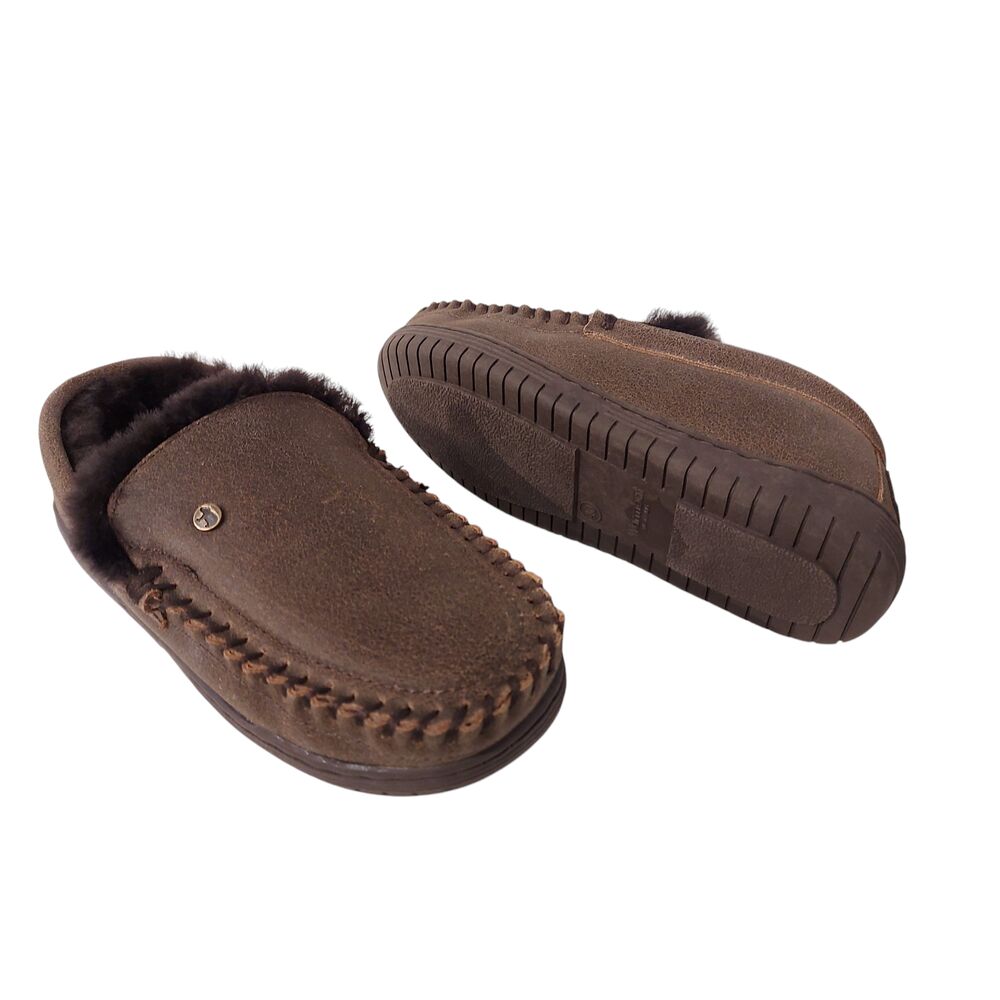 De Warmbat Pantoffel Grizzly GRZ4410 Brown Cracked Leather Donkerbruin is een heerlijk warme pantoffel. De pantoffel is gemaakt van Double faced sheepskin dat wil zeggen dat de buitenzijde van suède en de wol aan de binnenzijde bestaan uit één en dezelfde Merino schapenvacht. Heerlijk zacht en voelt heerlijk aan, aan de voet! De pantoffel heeft een natuurlijke temperatuur regulering, warm in de winter en koel in de zomer. De eigenschappen van de zool zijn: anti-slip, schokdempend en slijtvast. Een duurzame pantoffel van zeer hoge kwaliteit met uitstekend comfort!