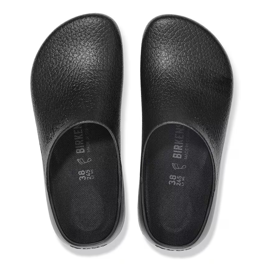 De Birki's by Birkenstock Klompen Slippers 0068011 Zwart is een slipper/klomp voor dames en heren. De klomp is volledig van slijtvast kunststof en heeft het bekende Birkenstock voetbed erin liggen. Het voetbed is ook los te koop in de winkel. Ideaal voor buiten, in de tuin of op het werk.