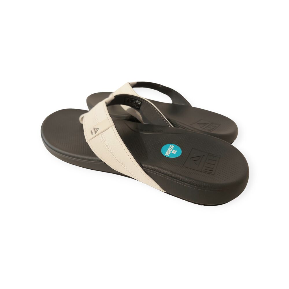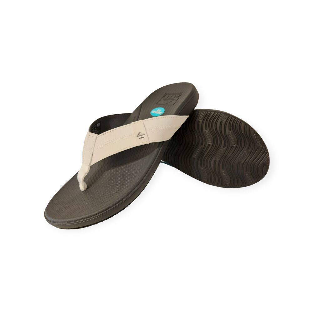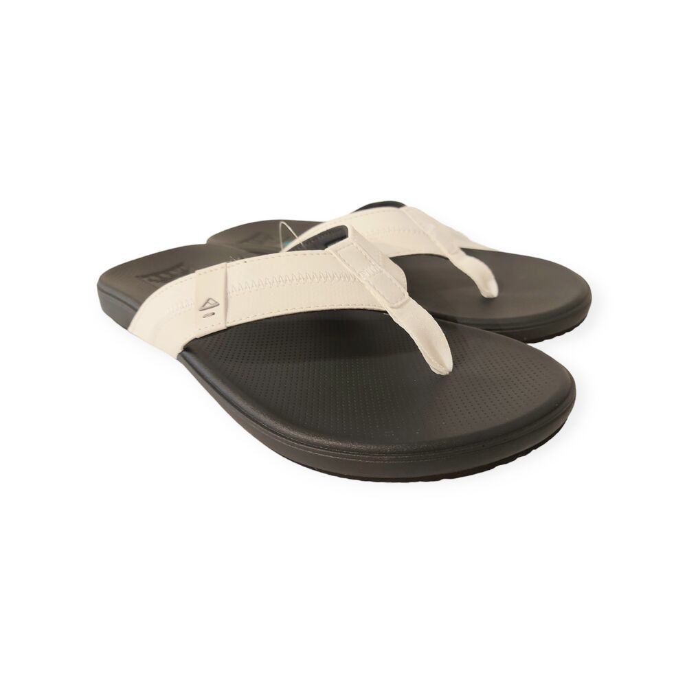 De Reef Teenslipper Cushion Phantom 2.0 White/Charcoal is een fijne teenslipper in de de kleuren wit en zwart. Reef maakt al 30 jaar stijlvolle en robuuste slippers voor op het land, het water, en alles daar tussenin. Het van oorsprong Argentijnse merk heeft een liefde voor de surf- en strandwereld en deelt dit graag met jou. De slippers en sandalen van Reef zorgen dat je onbezorgd alles wat je maar wil kan doen op het strand, en daar buiten. Bij ons vind je Reef slippers voor dames en heren, van hoogwaardig leer of juist een lichte synthetische stof, geschikt voor elke activiteit!