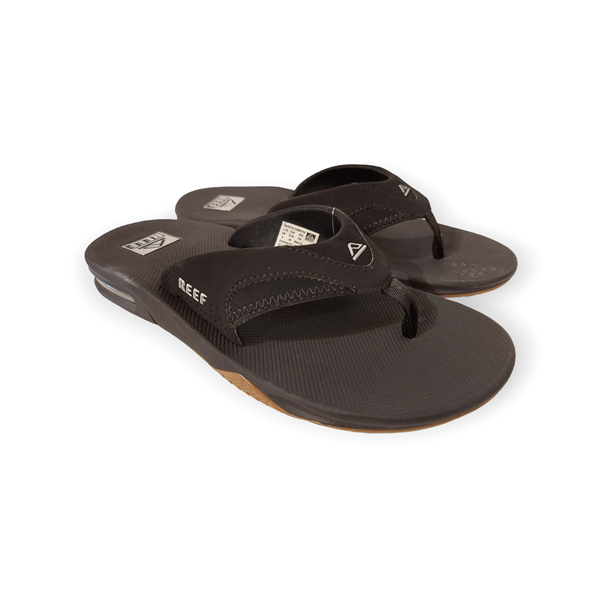 De Reef Teenslipper Fanning Black/Silver is een fijne teenslipper in de de kleur zwart. Aan de onderkant van deze slippers zit een bieropener, ideaal voor een mooie dag met een lekker biertje of een frisdrankje. Reef maakt al 30 jaar stijlvolle en robuuste slippers voor op het land, het water, en alles daar tussenin. Het van oorsprong Argentijnse merk heeft een liefde voor de surf- en strandwereld en deelt dit graag met jou. De slippers en sandalen van Reef zorgen dat je onbezorgd alles wat je maar wil kan doen op het strand, en daar buiten. Bij ons vind je Reef slippers voor dames en heren, van hoogwaardig leer of juist een lichte synthetische stof, geschikt voor elke activiteit!