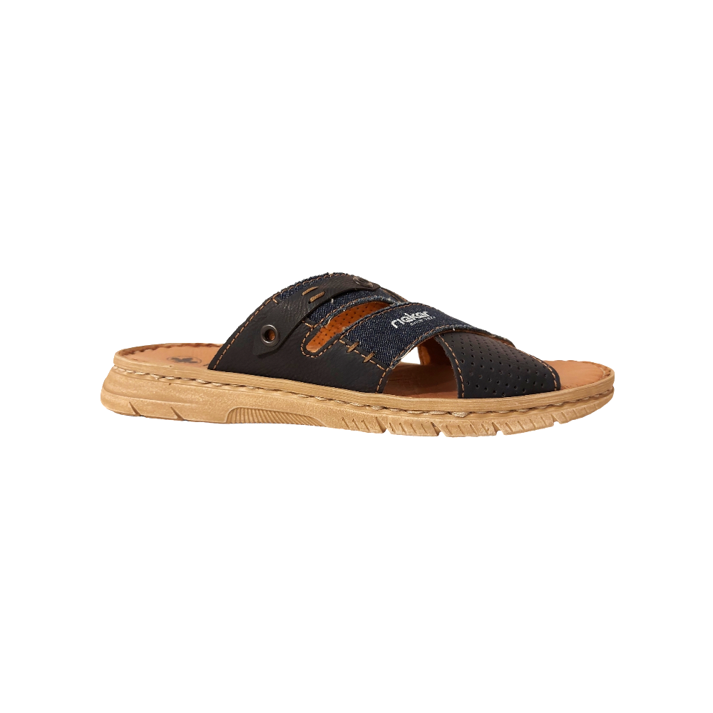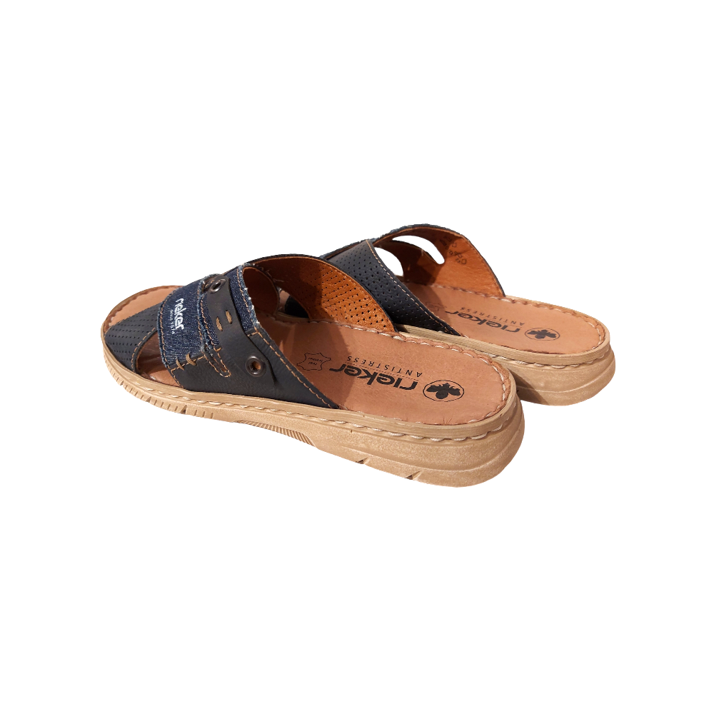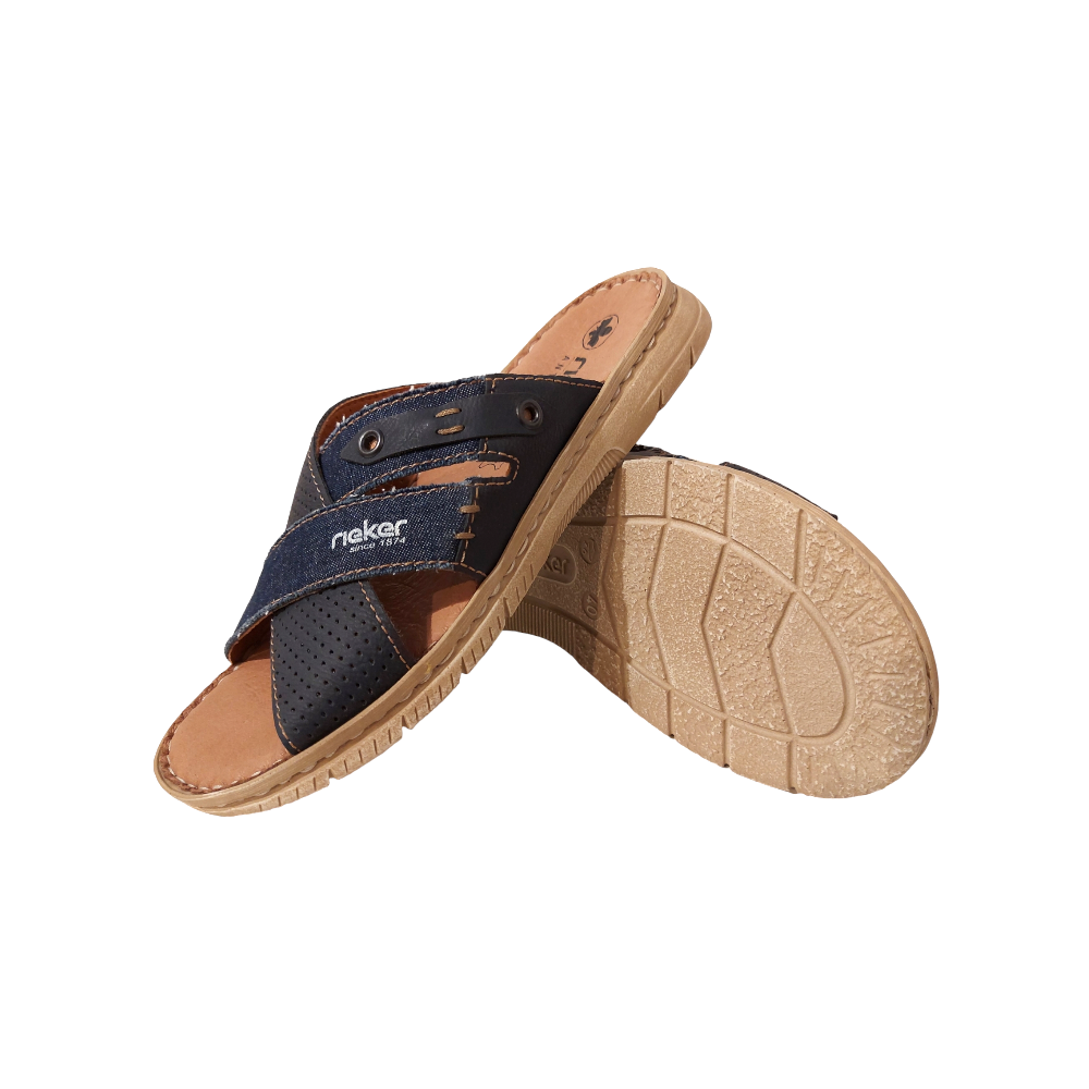 De Rieker Slipper 21384-14 Blauw is een herenslipper waar je zo inschiet. Ideaal voor de warme zomerse dagen. De kruisbanden zorgen ervoor dat de slipper stevig is en goed om de voet blijft zitten. Het voetbed is heerlijk zacht. Het bovenwerk en de voering zijn van textiel. De soepele en lichtgewicht zool draagt bij aan een fijn loopcomfort.