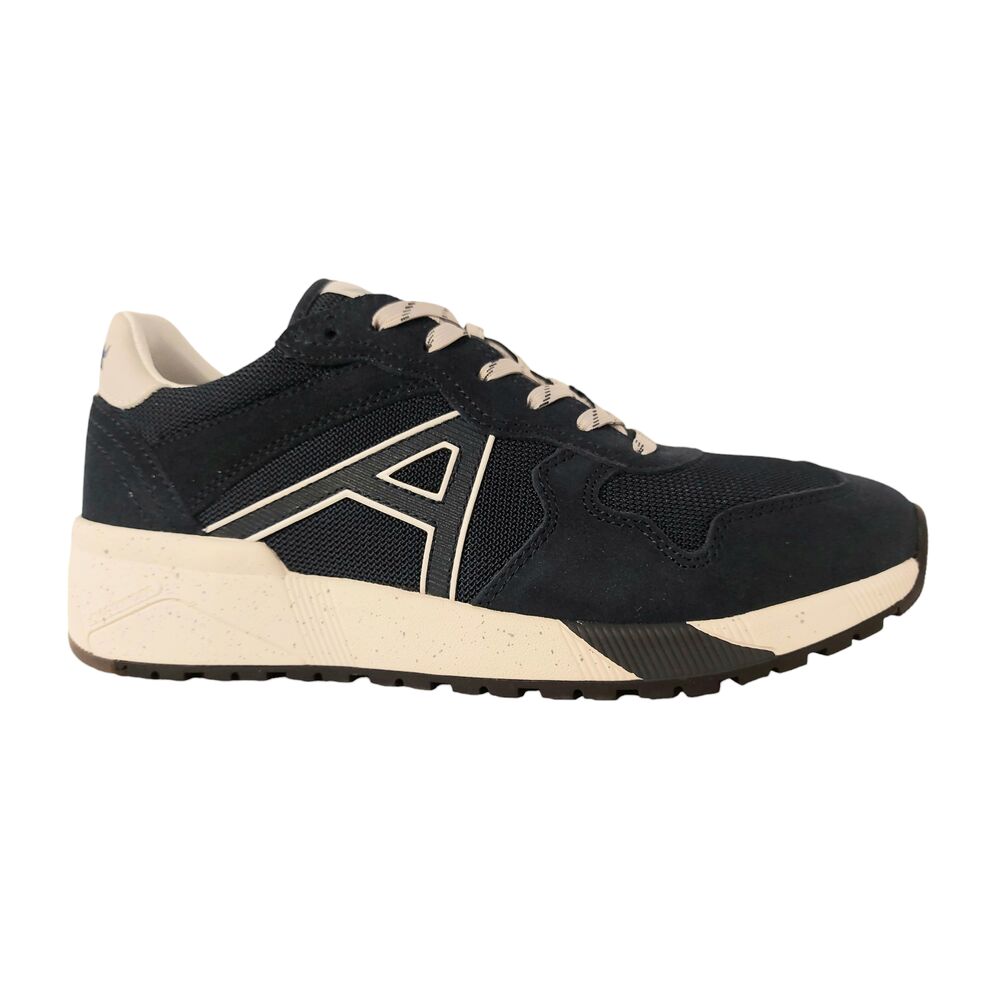 De Allrounder Sneaker Speed 2 Dress Blue Donkerblauw is een sportieve sneaker voor heren. Het bovenwerk is een mooie combinatie van verschillende leersoorten gecombineerd met textiel. Een mooie combinatie van blauwkleurig suède en mesh, afgewerkt met een witte en grijze details. De voering is van textiel. Verder heeft de schoen een heerlijk zacht anatomische voetbed wat schokken beperkt tot een minimum, maar die eventueel ook uitneembaar is zodat er eventuele steunzolen in gedragen kunnen worden. De schoen heeft een stoere sportieve rubberen zool die ook goede demping geeft en de hiel beschermt. Loopcomfort gegarandeerd!