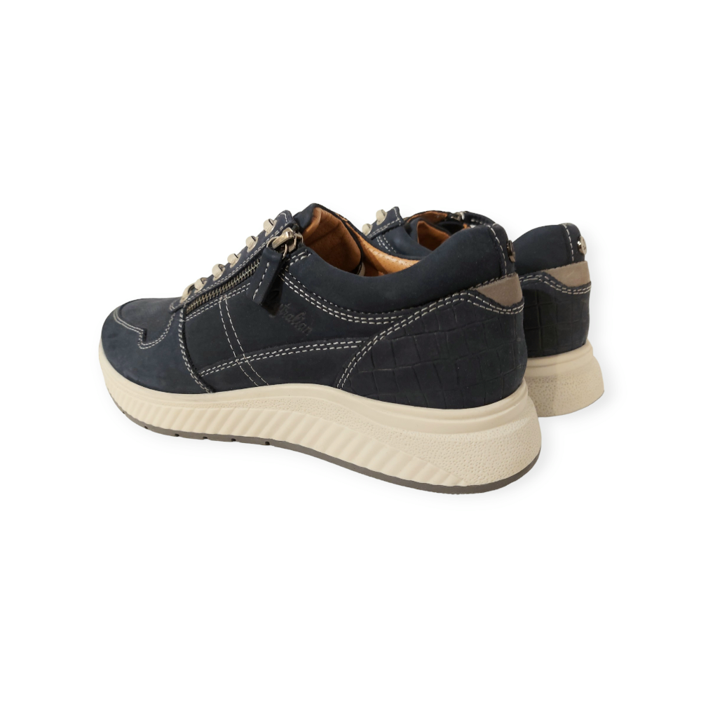 De Australian Sneaker Hurricane 15.1528.07-S36 Mid Blue Nubuck is een mooie en sportieve sneaker met een goede pasvorm. Het bovenwerk is een prachtige leer in een blauwe kleur. Verder is de sneaker ook textiel leer gevoerd. Door de rits wordt de instap nog makkelijker gemaakt. Met een goed voetbed, die ook eventueel uitneembaar is zodat er eventueel eigen steunzolen in kunnen worden gedragen. Met een stoere, rubberen, slijtvaste zool. Loopcomfort gegarandeerd!