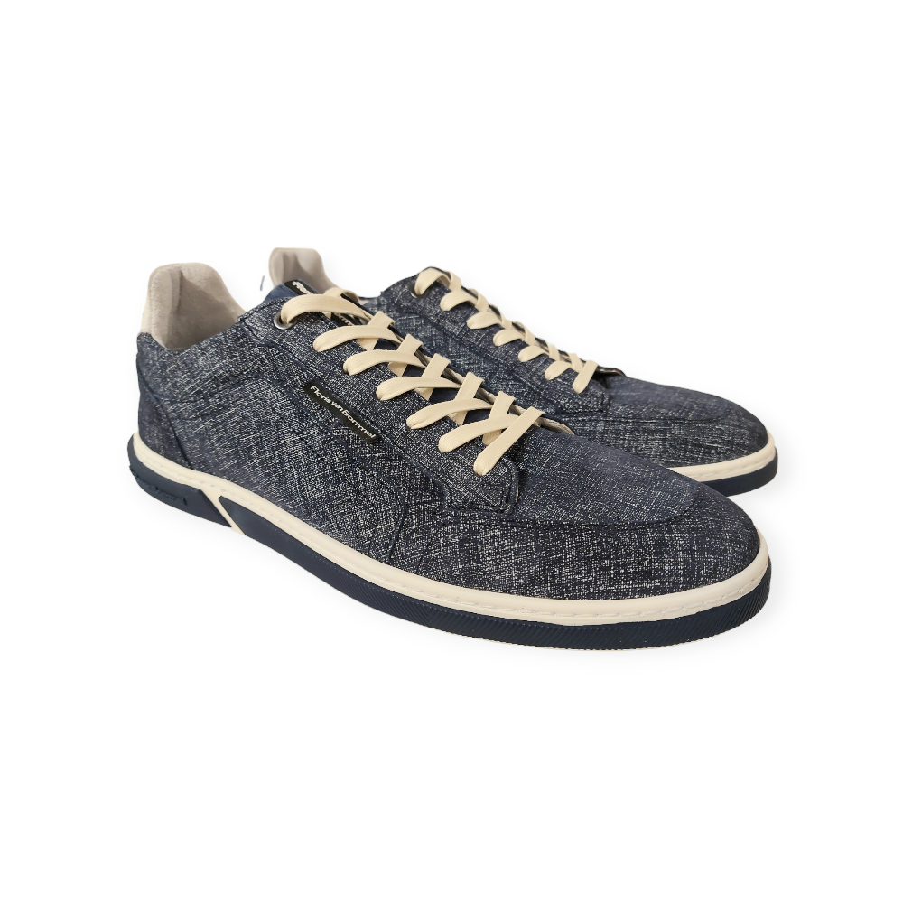 De Floris van Bommel Sneaker SFM-10202-41-05 Terri Dark Blue, is een prachtige sportieve sneaker met een uitstekende pasvorm. Het bovenwerk is gemaakt van prachtig leer, in een mooi blauwe denim kleur. Bovendien is de schoen volledig leer gevoerd en heeft de schoen een leren, uitneembaar voetbed. Uitermate geschikt om er eigen steunzolen in te kunnen dragen. De sneaker heeft een G½ leest, dat is een normale breedte maat. Met een rubberen zool, om het loopcomfort te optimaliseren. De beste kwaliteit, speciaal voor u!