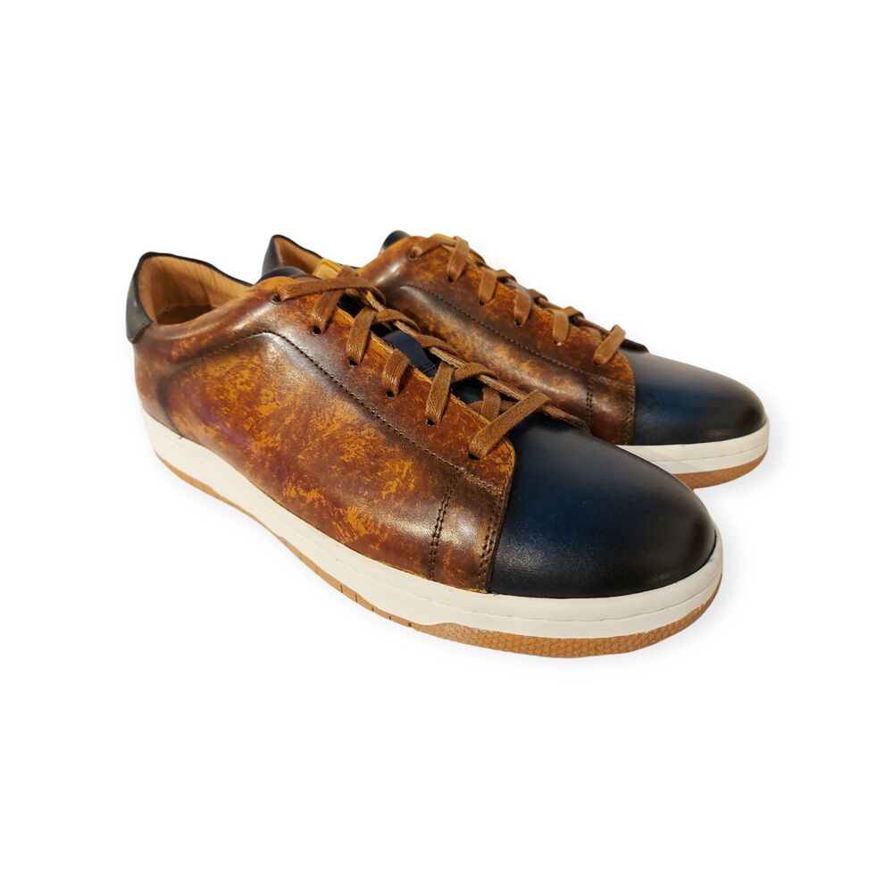De Laura Vita Sneaker Azriel 01 DJ2216-1 Blau Bruin Blauw is een prachtige schoen voor heren. Als het beestje maar een naam heeft, want dit is wel een echte eyecatcher! Het bovenwerk is gemaakt van gladleer, in de kleuren bruin, blauw. Makkelijke kleuren om te combineren. De schoenen zijn gevoerd met leer en hebben een rubberen loopzool. Verder is de veterschoen uitgerust met veters voor een ideale pasvorm. De kleurcombinatie samen met de vormgeving maakt ook dit model weer een echte eyecatcher!