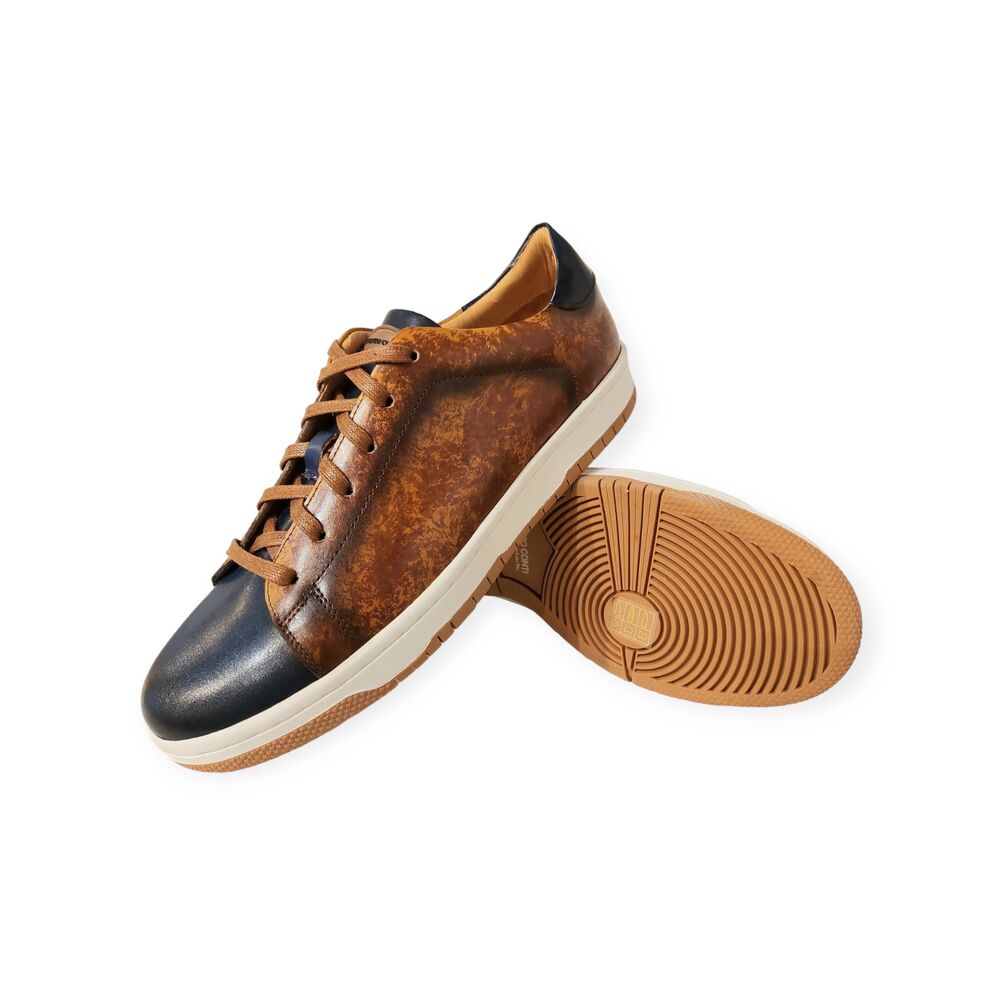 De Laura Vita Sneaker Azriel 01 DJ2216-1 Blau Bruin Blauw is een prachtige schoen voor heren. Als het beestje maar een naam heeft, want dit is wel een echte eyecatcher! Het bovenwerk is gemaakt van gladleer, in de kleuren bruin, blauw. Makkelijke kleuren om te combineren. De schoenen zijn gevoerd met leer en hebben een rubberen loopzool. Verder is de veterschoen uitgerust met veters voor een ideale pasvorm. De kleurcombinatie samen met de vormgeving maakt ook dit model weer een echte eyecatcher!