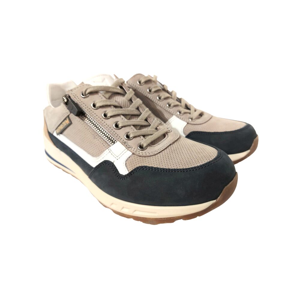 De Mephisto Sneaker Bradley Blauw Grijs Nubuck is een comfortabele veterschoen met een uitstekende pasvorm. Het bovenwerk is van mooi grijs met blauw nubuck leer. Ook volledig leer gevoerd. Met een zeer goed voetbed, die ook uitneembaar is om er eigen steunzolen in te kunnen dragen. Met een makkelijke instap door de rits, náást de vetersluiting. De slijtvaste rubberen zool geeft goede demping, en draagt bij aan een geweldig loopcomfort!