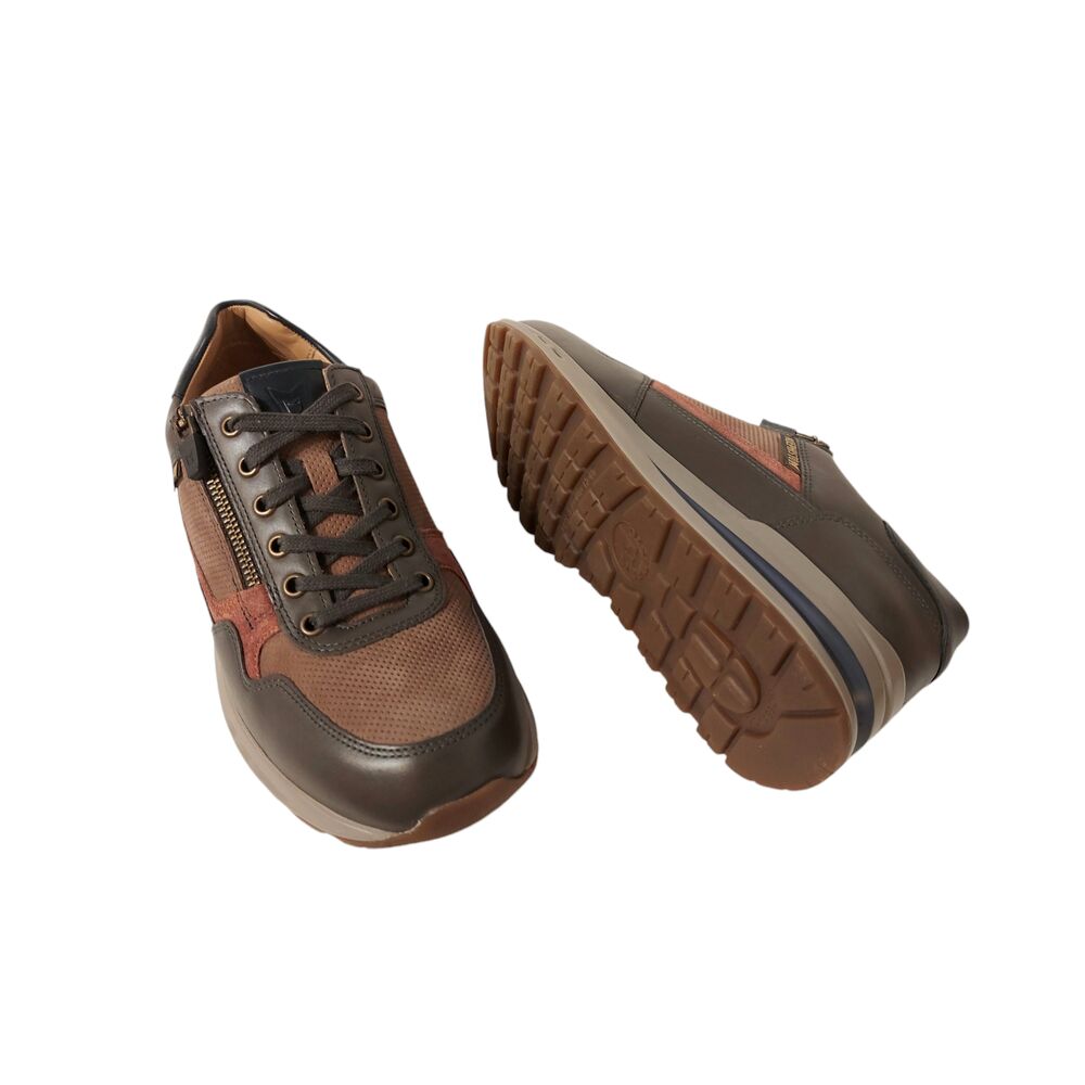 De Mephisto Sneaker Bradley Graphite Grijs Combi is een comfortabele veterschoen/sneaker met een uitstekende pasvorm. Het bovenwerk is gemaakt van grijs gladleer gecombineerd met zand- en zalmroze kleurige details. De binnenkant van de sneaker is volledig leer gevoerd. De schoen heeft een zeer goed voetbed, die eventueel ook uitneembaar is zodat er eigen steunzolen in kunnen worden gedragen. Met een makkelijke instap door de rits die naast de vetersluiting zit. De sneaker heeft een brede leest en valt als wijdte H. De slijtvaste rubberen zool geeft goede demping, en draagt bij aan een geweldig loopcomfort!