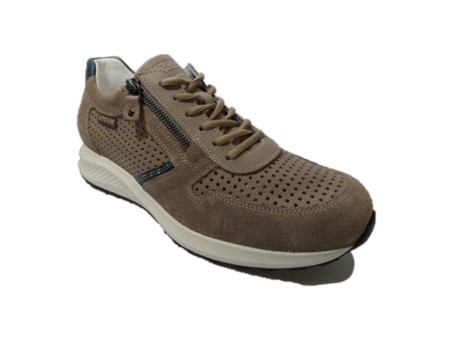 De Mephisto Sneaker Dino Perf Warm Grey Grijs Taupe is een comfortabele, zomerse sneaker met een uitstekende pasvorm! Het bovenwerk is een mooie combinatie van suède en geperforeerd glad leer in een warm grijze kleur, gecombineerd met subtiele donkerblauwe details. De schoen is leer gevoerd en het voetbed is van stof. Naast de vetersluiting heeft de sneaker ook een rits, voor een makkelijke instap. Het merk Mephisto staat bekend om hun enorme demping. Dit zit voor een groot gedeelte in hun goede voetbed, maar ook de zool werkt hier aan mee. Het voetbed is ook uitneembaar om er eigen steunzolen in te kunnen dragen. De slijtvaste rubberen zool geeft goede demping en draagt bij aan een geweldig loopcomfort!