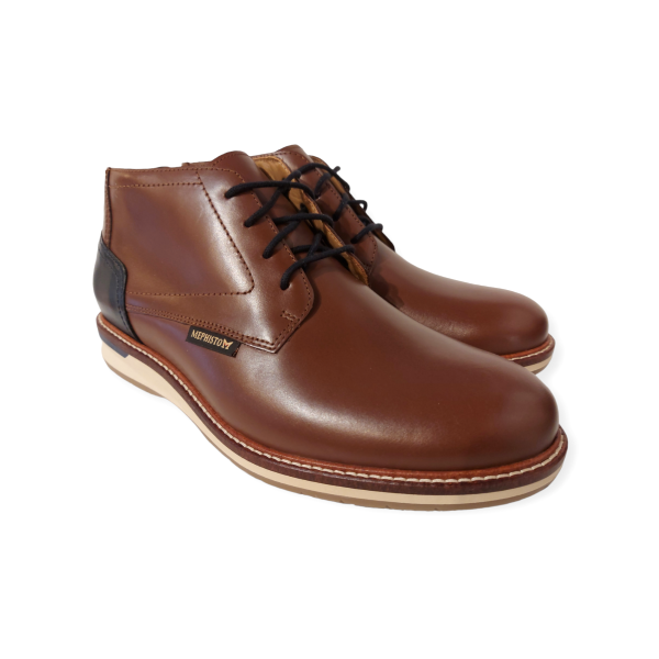 De Mephisto Veterboot Frederico Chestnut Bruin is een uiterst comfortabele veterboot met een uitstekende pasvorm. Het bovenwerk is gemaakt van bruin, glad leer, met een blauw detail aan de achterkant. De veterboot is geheel leer gevoerd. Met een zeer goed voetbed dat ook uitneembaar is om er eigen steunzolen in te kunnen dragen. De slijtvaste zool geeft zeer goede demping, en draagt bij aan een geweldig loopcomfort!