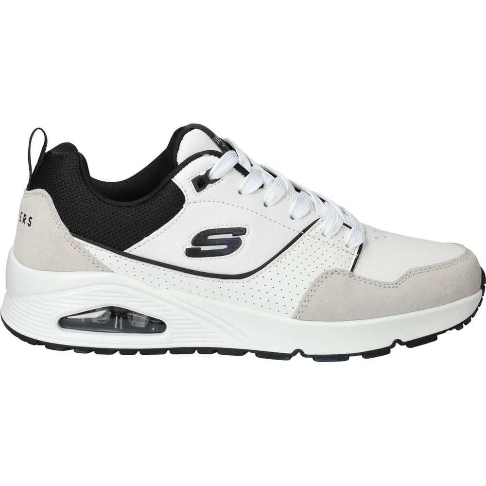 De Skechers Sneaker UNO Retro One 183020/WBK Wit Zwart is een heerlijk comfortabele sneaker voor heren. Het bovenwerk van de schoen is gemaakt van gedeeltelijk leer in een witte kleur met zwarte en zandkleurige details. De binnenkant van de sneaker is gemaakt van textiel met een gewatteerde kraag en tong. De schoen heeft een zool van Memory Foam. Dit betekent dat de schoen naar uw voet zal gaan staan en uw voet zo optimaal zal ondersteunen. Kortom een uiterst comfortabele sneaker. Tot slot heeft de schoen een flexibele gripzool voor de beste loopcomfort en goede grip. Kortom, de ultieme oplossing voor een dag vol comfort