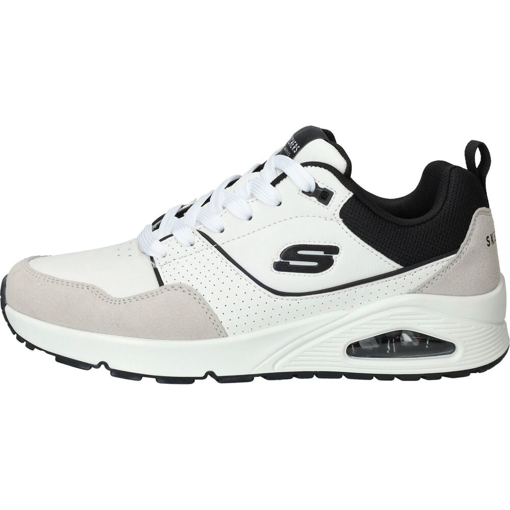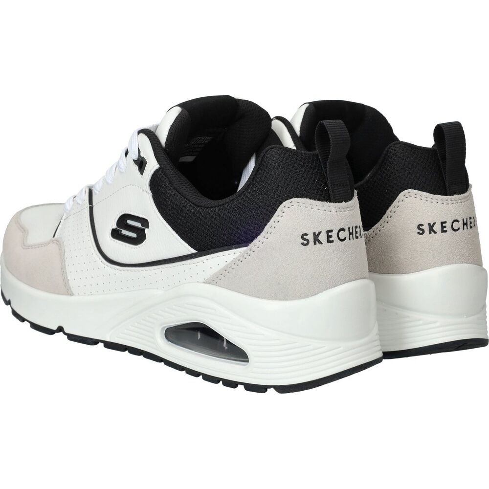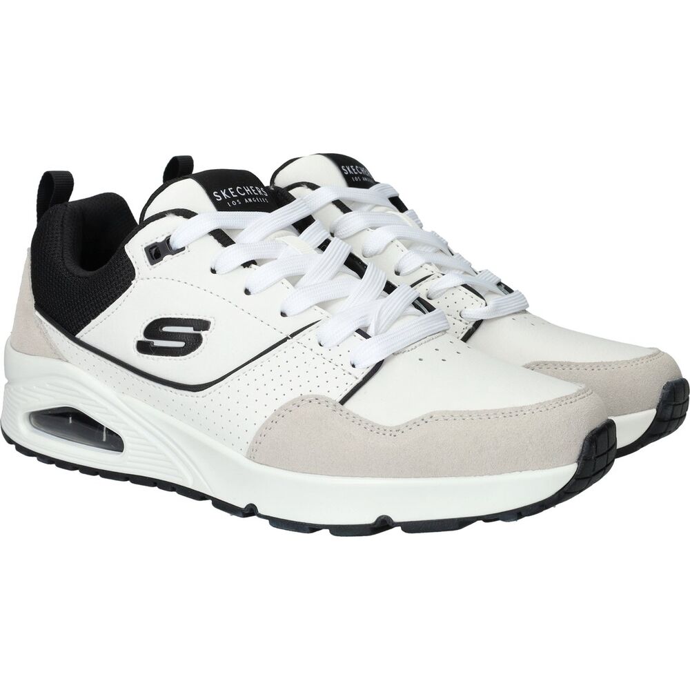 De Skechers Sneaker UNO Retro One 183020/WBK Wit Zwart is een heerlijk comfortabele sneaker voor heren. Het bovenwerk van de schoen is gemaakt van gedeeltelijk leer in een witte kleur met zwarte en zandkleurige details. De binnenkant van de sneaker is gemaakt van textiel met een gewatteerde kraag en tong. De schoen heeft een zool van Memory Foam. Dit betekent dat de schoen naar uw voet zal gaan staan en uw voet zo optimaal zal ondersteunen. Kortom een uiterst comfortabele sneaker. Tot slot heeft de schoen een flexibele gripzool voor de beste loopcomfort en goede grip. Kortom, de ultieme oplossing voor een dag vol comfort