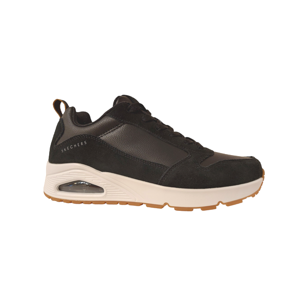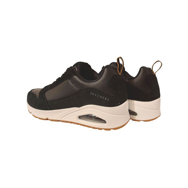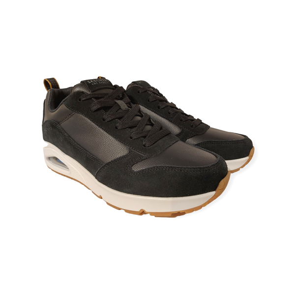 De Skechers Sneaker UNO Stacre 52468/BKW is een heerlijk comfortabele sneaker voor heren. Het bovenwerk van de schoen is gemaakt van gedeeltelijk leer in een zwarte zwart. De binnenkant van de sneaker is gemaakt van textiel met een gewatteerde kraag en tong. De schoen heeft een zool van Memory Foam. Dit betekent dat de schoen naar uw voet zal gaan staan en uw voet zo optimaal zal ondersteunen. Kortom een uiterst comfortabele sneaker. Tot slot heeft de schoen een flexibele gripzool voor de beste loopcomfort en goede grip. Kortom, de ultieme oplossing voor een dag vol comfort