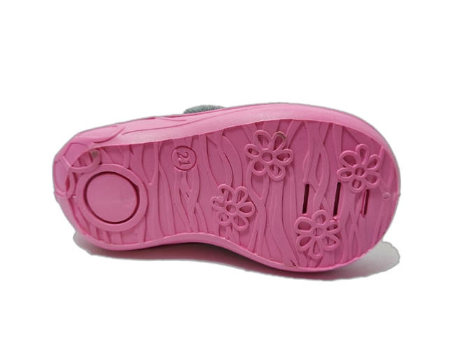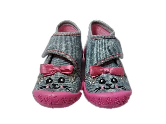 Fischer Markenschuh Pantoffel 482742 Grijs zijn comfortabele pantoffeltjes voor kinderen. Met een soepel en slijtvast zooltje. De upper is van textiel met een poezensnoetje, de voering is van badstof. Verstelbaar met klittenband.