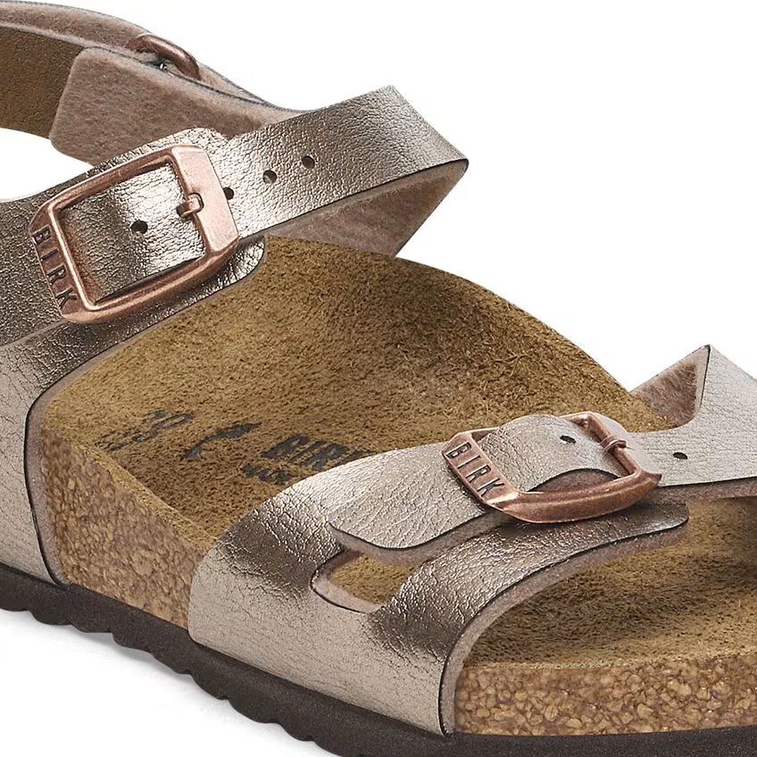 De Birkenstock Sandaal Rio AS Kids 1029445 Graceful Taupe Smal is een taupe/brons kleurige sandaal voor kinderen met een goed leren voetbed. De slipper heeft 3 verstelbare banden voor een optimale pasvorm. De achterste band is verstelbaar met klittenband, ideaal voor kinderen om zelf aan te trekken. Verder is zowel het bovenwerk als de voering gemaakt van Birko-Flor. Het voetbed is van suède leer. De zool is gemaakt van het materiaal EVA*. De slipper heeft een normale, tot smalle wijdte.