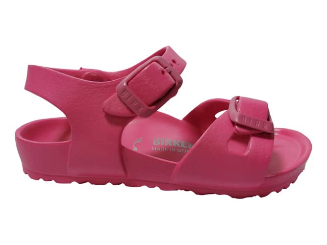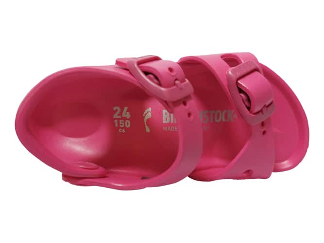 De Birkenstock Sandaal Rio Eva 1015463 Beetroot Purple Roze Smal, in een prachtig roze kleur is een sandaal met een goed voetbed. De slipper is gemaakt van één materiaal, namelijk EVA*. Ideaal te verstellen voor optimale pasvorm. Verder heeft de sandaal een smaller voetbed.