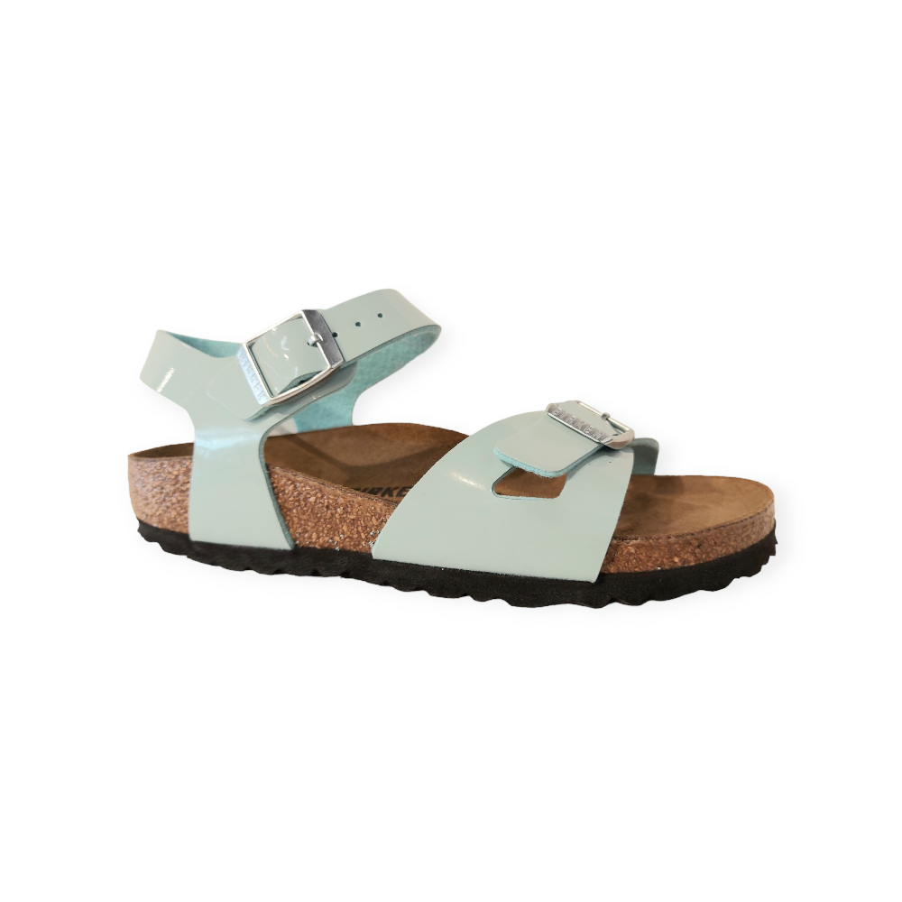 De Birkenstock Sandaal Rio Kids 1026870 Surf Green Smal is een mint groene sandaal voor kinderen met een goed leren voetbed. De slipper heeft twee verstelbare banden voor een optimale pasvorm. Verder is zowel het bovenwerk als de voering gemaakt van Birko-Flor. Het voetbed is van suède leer. De zool is gemaakt van het materiaal EVA*. De slipper heeft een normale, tot smalle wijdte.